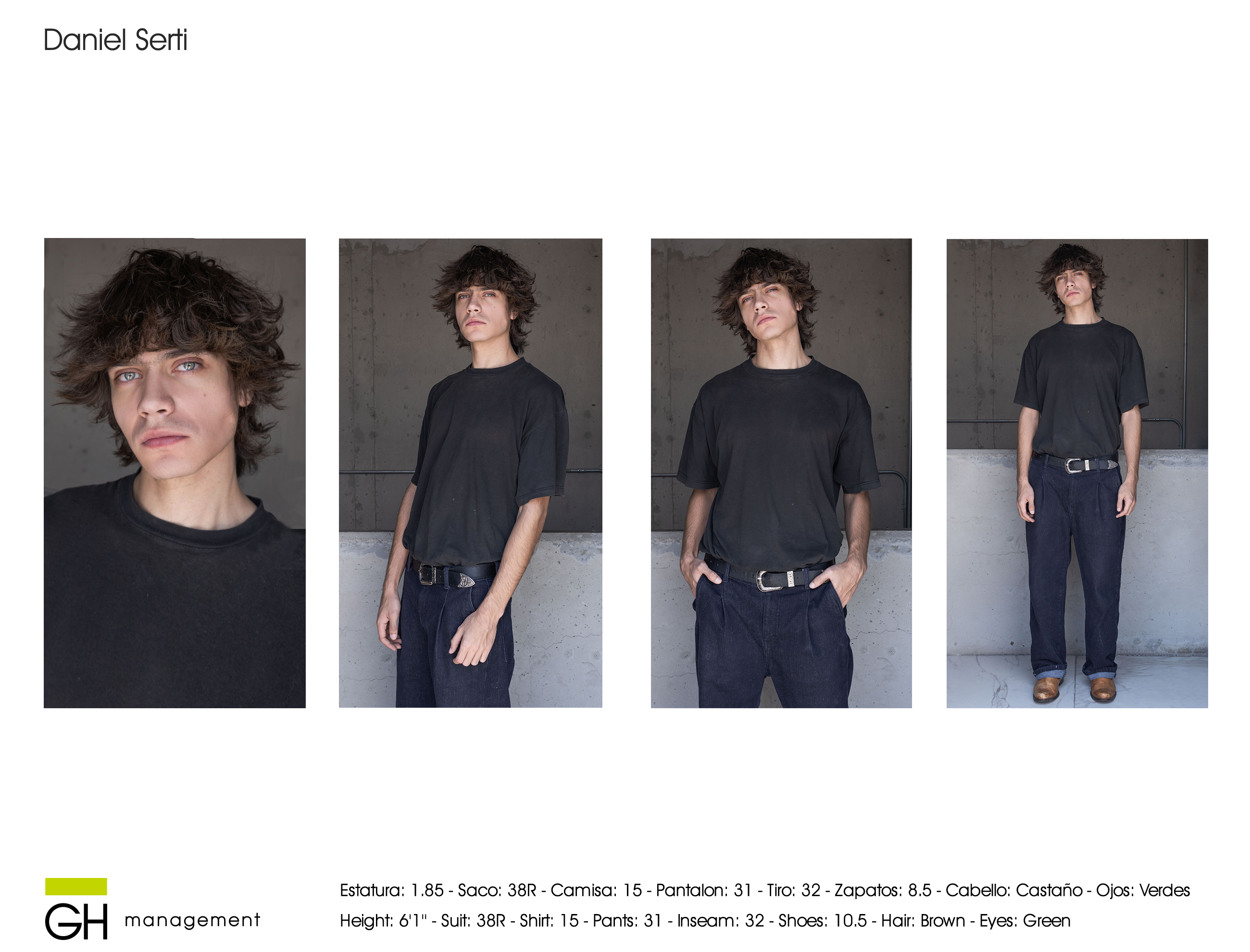 Estatura: 1.85 - Saco: 38R - Camisa: 15 - Pantalon: 31 - Tiro: 32 - Zapatos: 8.5 - Cabello: CastaƱo - Ojos: Verdes