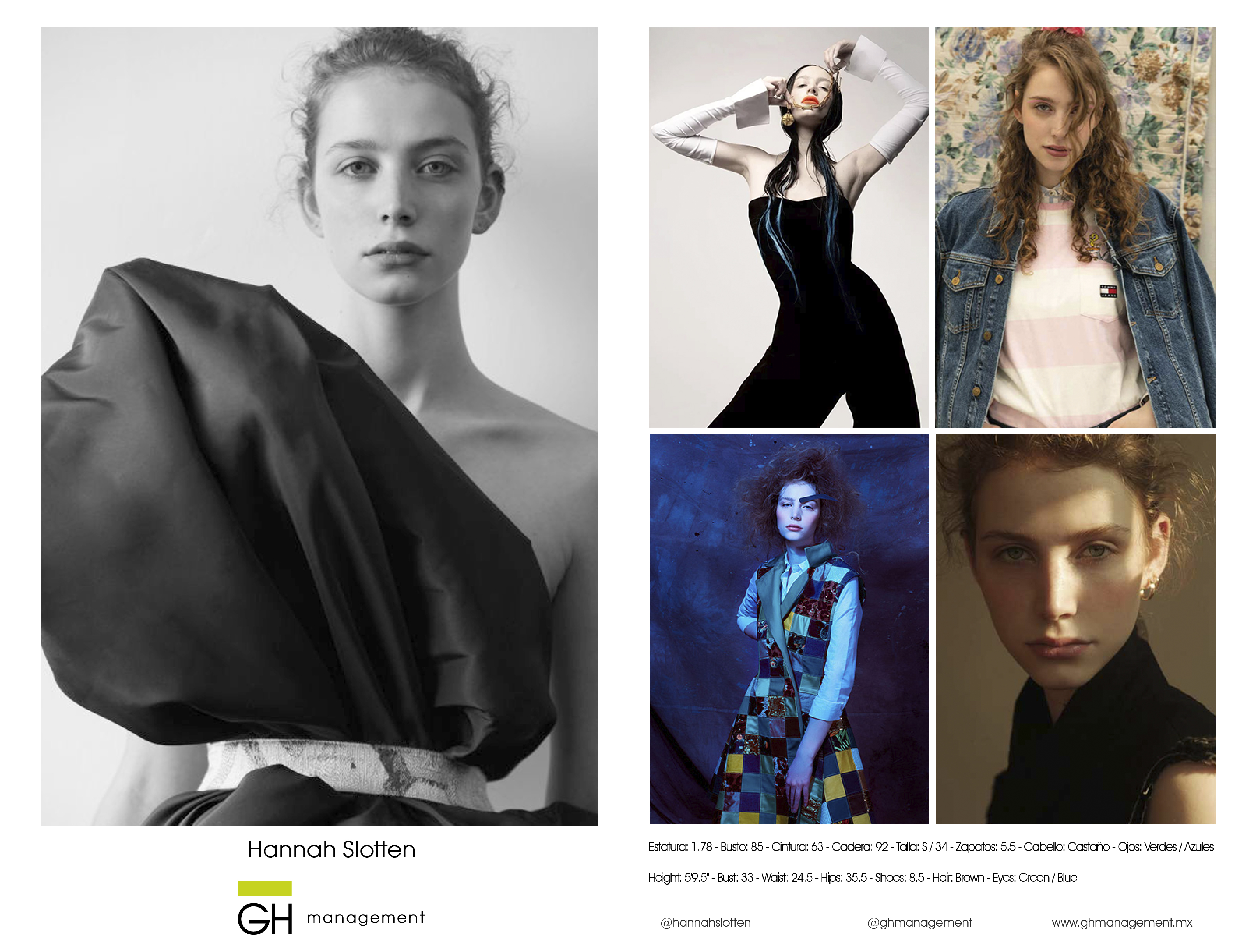 Height: 5'9.5'' - Bust: 33 - Waist: 24.5 - Hips: 35.5 - Shoes: 8.5 - Hair: Brown - Eyes: Green / Blue
