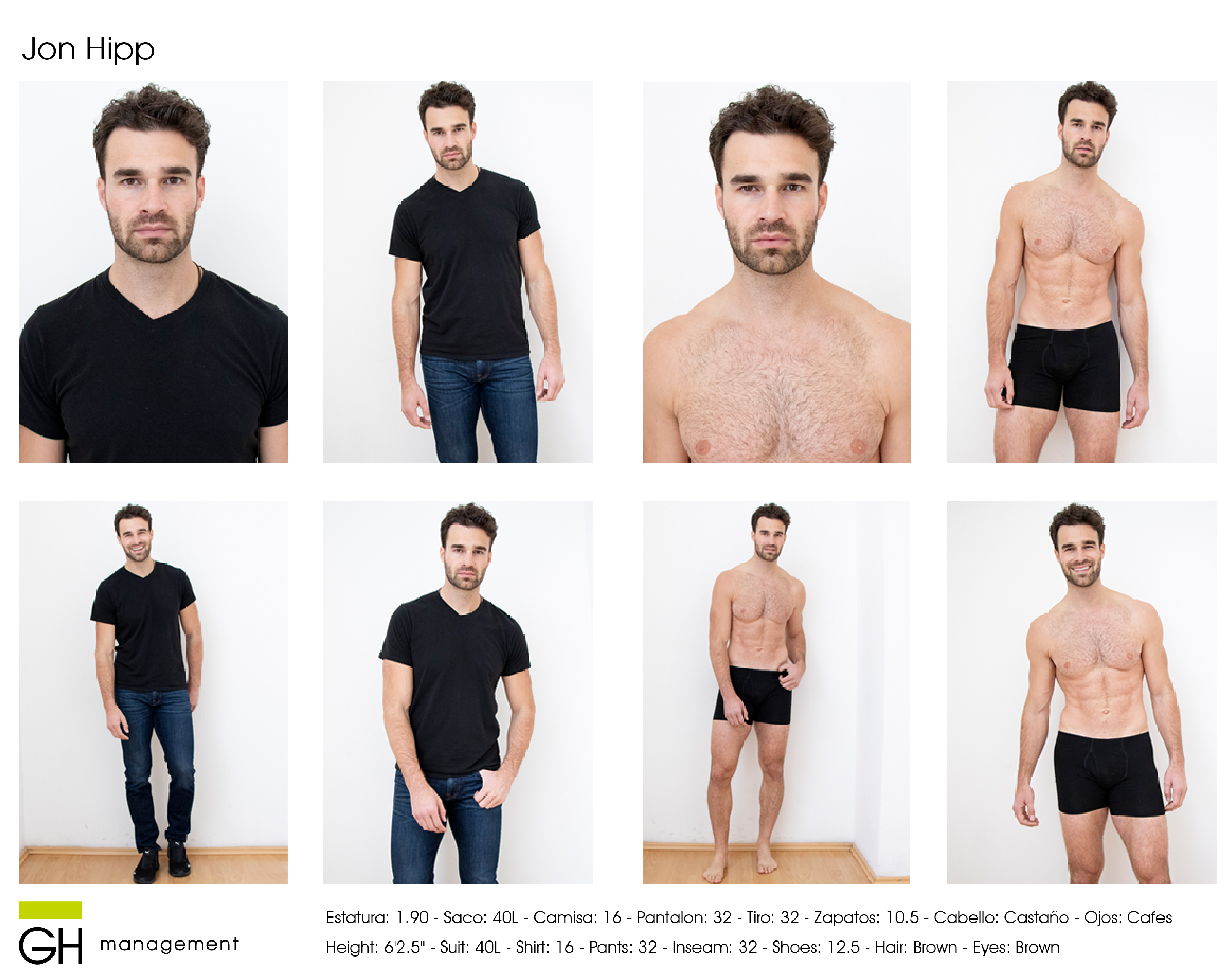 Estatura: 1.90 - Saco: 40L - Camisa: 16 - Pantalon: 32 - Tiro: 32 - Zapatos: 10.5 - Cabello: CastaƱo - Ojos: Cafes