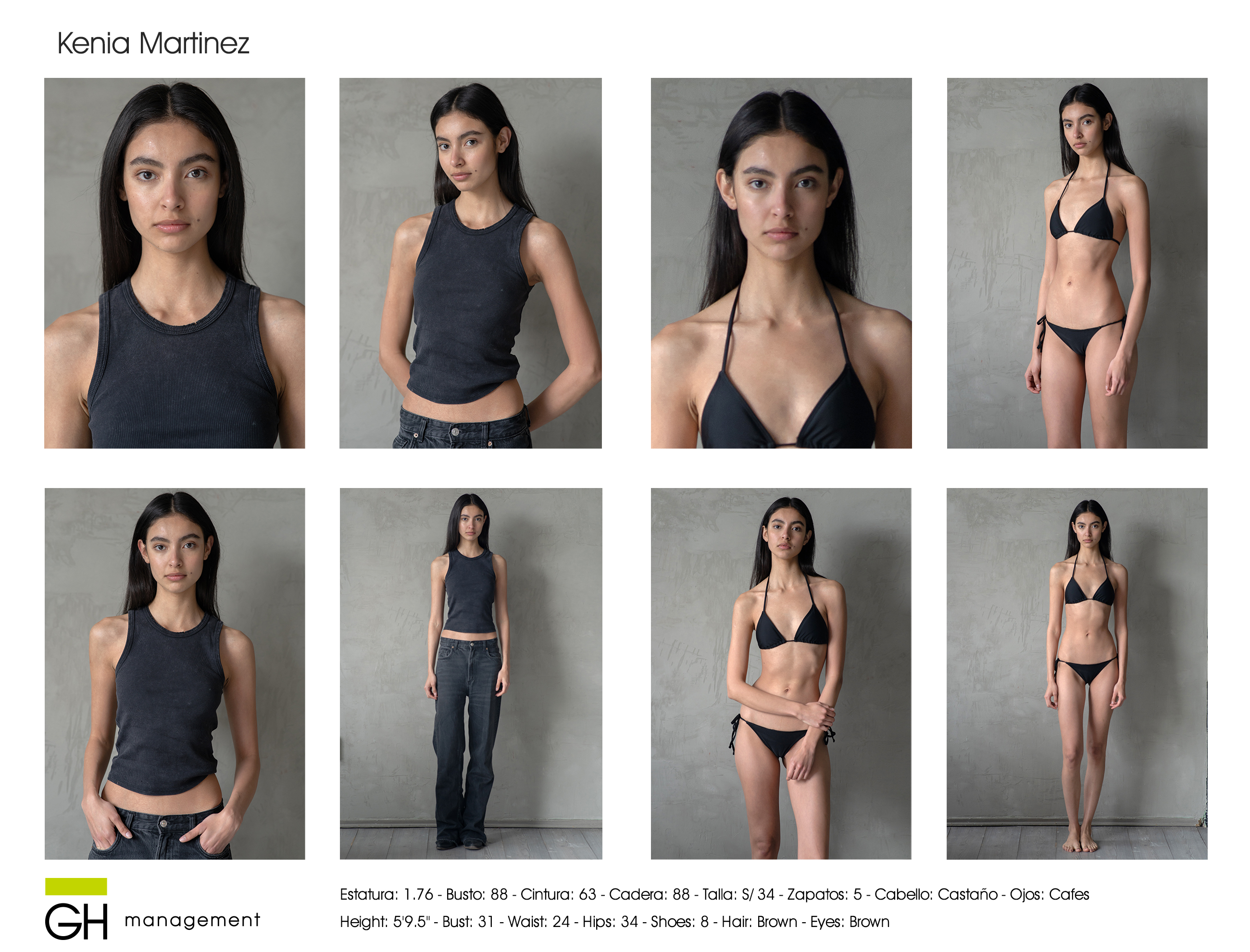 Estatura: 1.76 - Busto: 88 - Cintura: 63 - Cadera: 88 - Zapatos: 5 - Cabello: CastaƱo - Ojos: Cafes