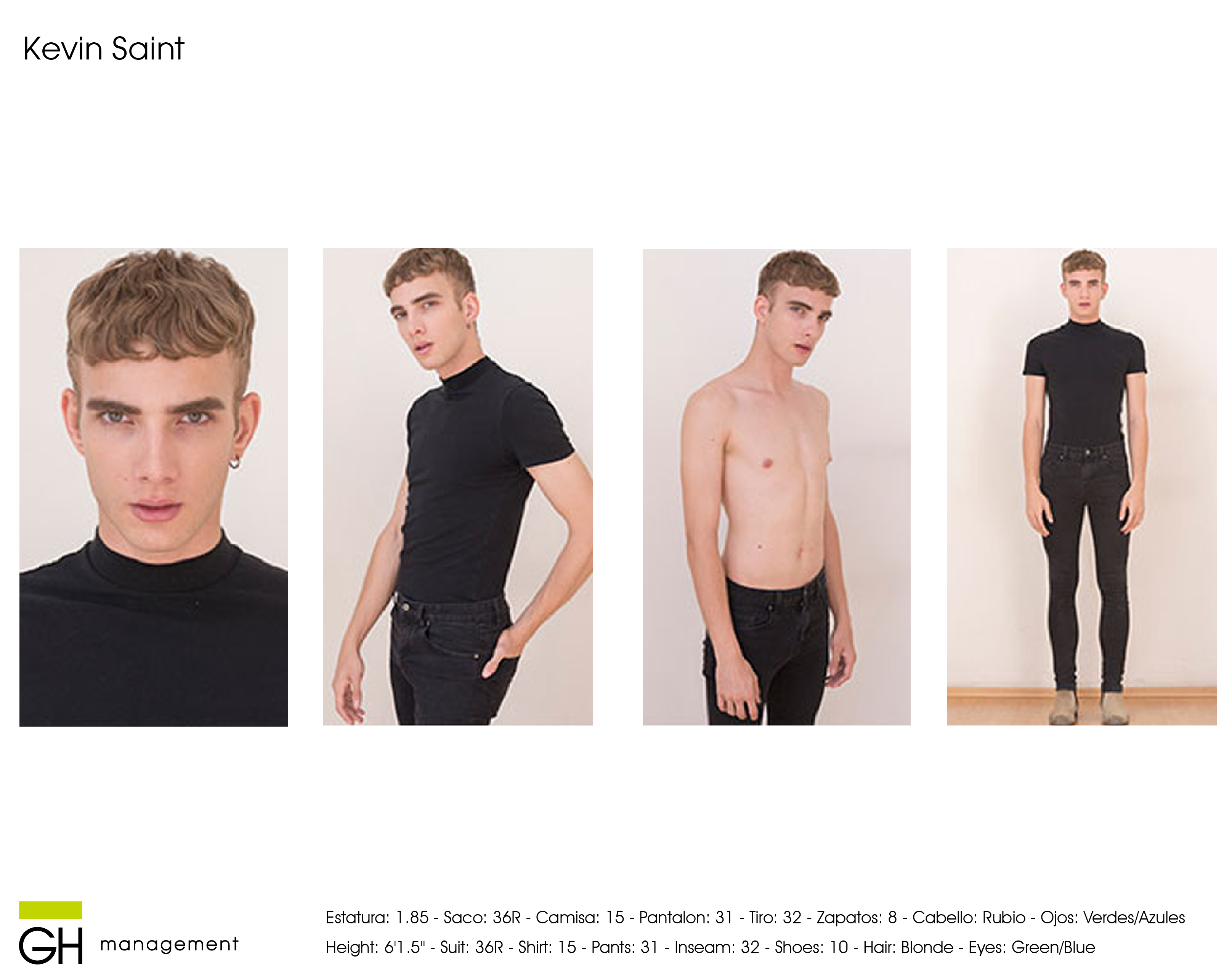 Estatura: 1.85 - Saco: 36R - Camisa: 15 - Pantalon: 31 - Tiro: 32 - Zapatos: 8 - Cabello: Rubio - Ojos: Verdes/Azules