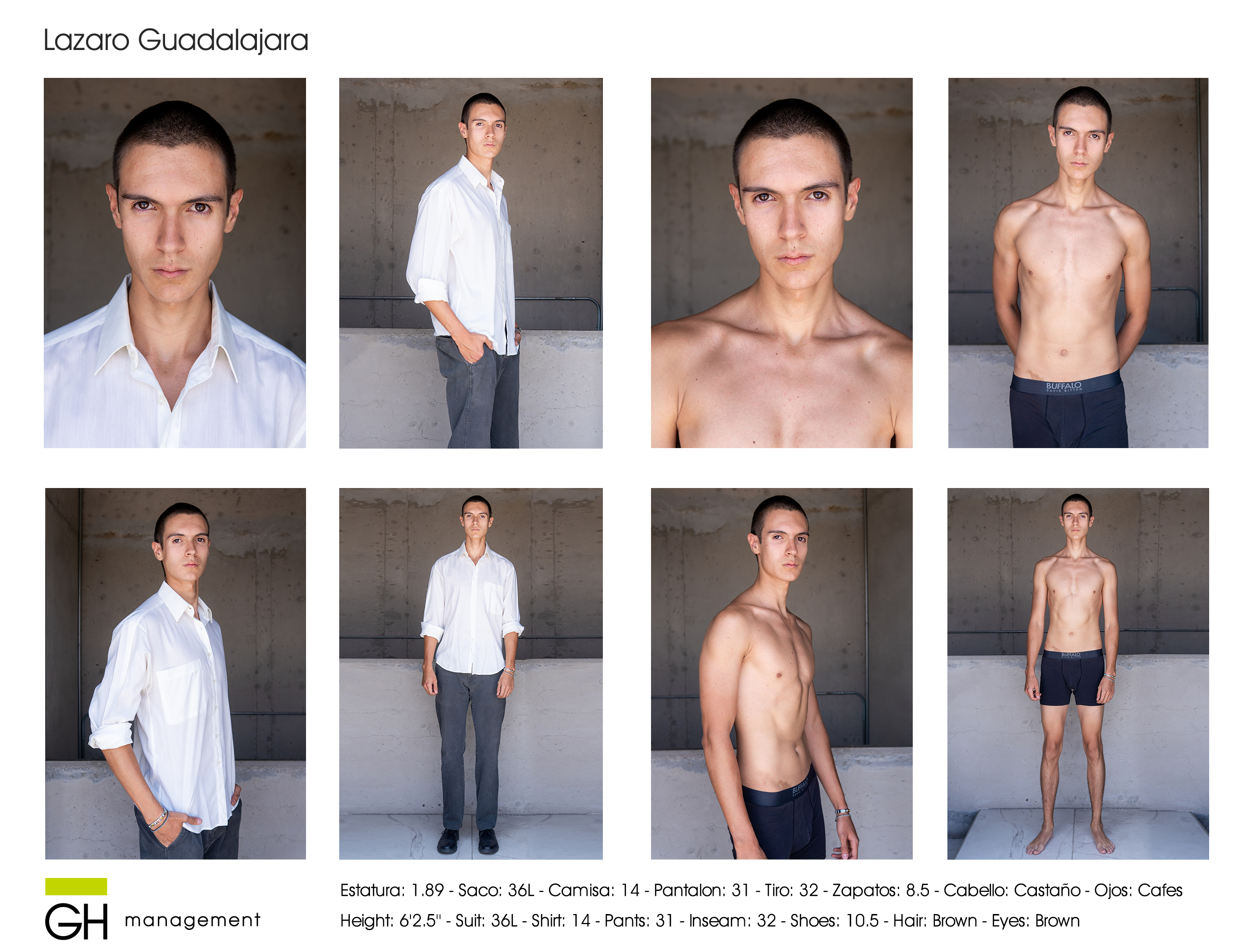 Estatura: 1.89 - Saco: 36L - Camisa: 14 - Pantalon: 31 - Tiro: 32 - Zapatos: 8.5 - Cabello: CastaƱo - Ojos: Cafes