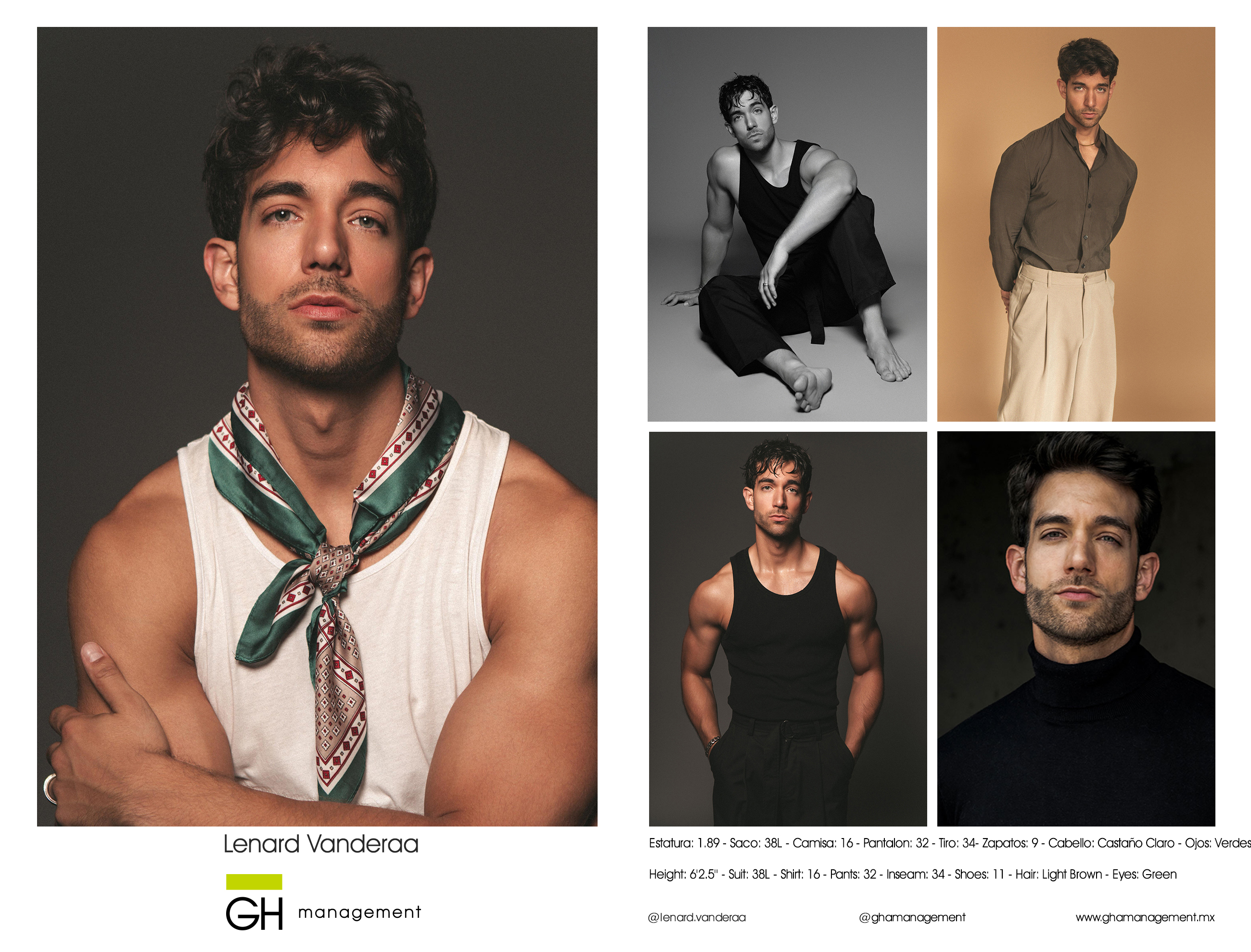 Estatura: 1.89 - Saco: 38L - Camisa: 16 - Pantalon: 32 - Tiro: 34- Zapatos: 9 - Cabello: CastaƱo Claro - Ojos: Verdes