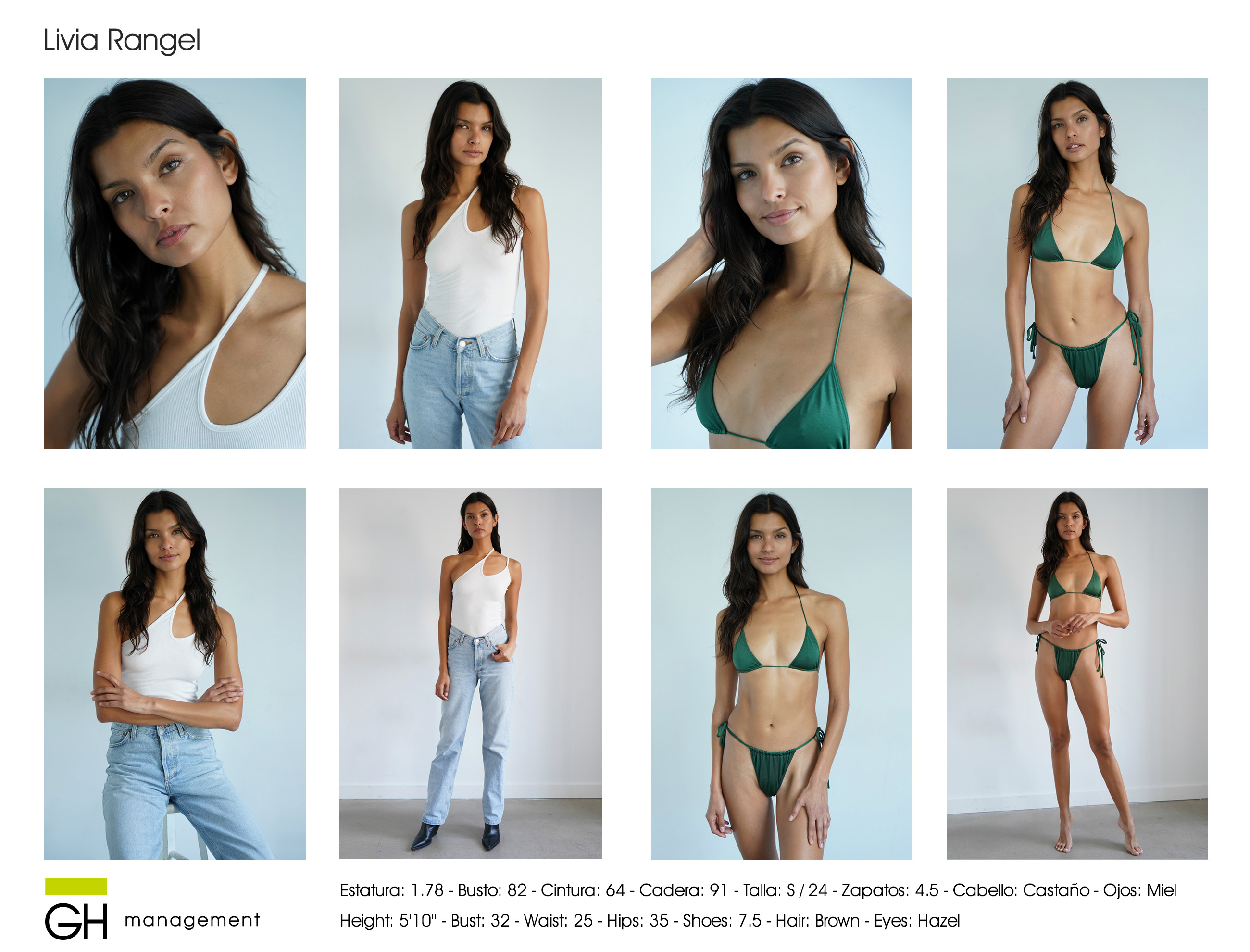 Estatura: 1.78 - Busto: 82 - Cintura: 64 - Cadera: 91 - Talla: S / 24 - Zapatos: 4.5 - Cabello: CastaƱo - Ojos: Miel