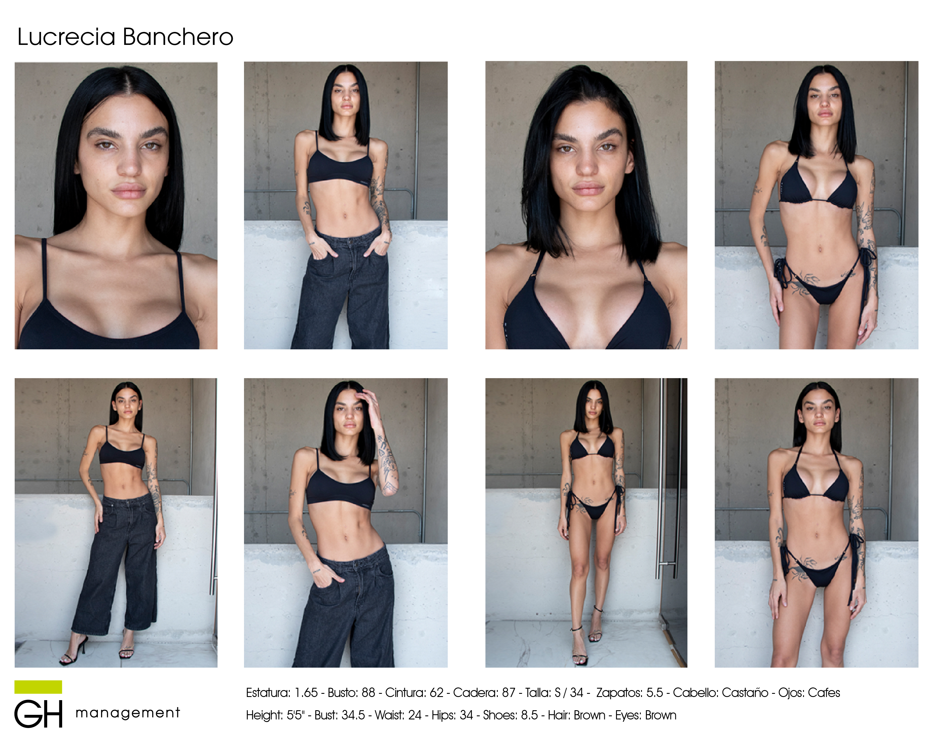 Height: 5'5'' - Bust: 34.5 - Waist: 24 - Hips: 34 - Shoes: 8.5 - Hair: Brown - Eyes: Brown