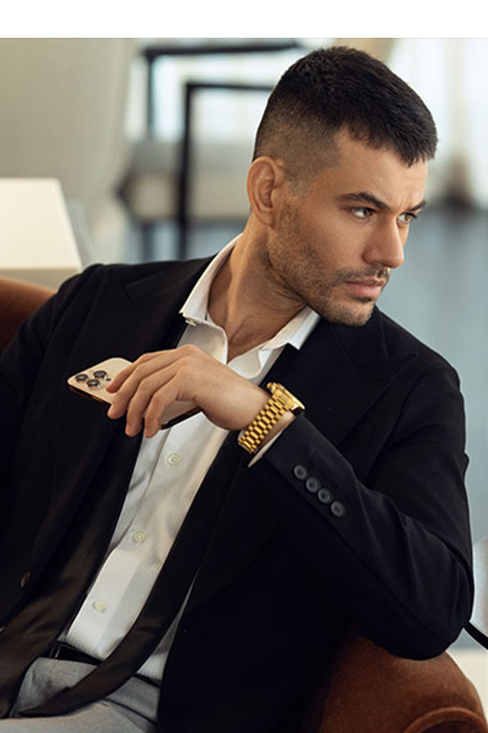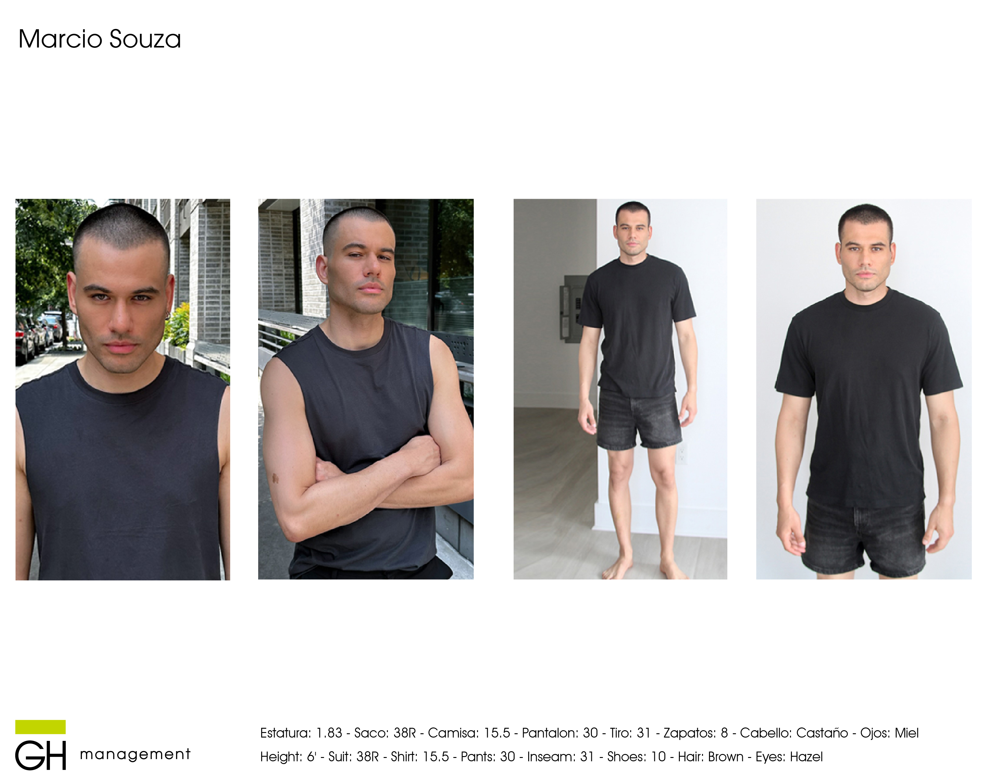 Estatura: 1.83 - Saco: 38R - Camisa: 15.5 - Pantalon: 30 - Tiro: 31 - Zapatos: 8 - Cabello: CastaƱo - Ojos: Miel