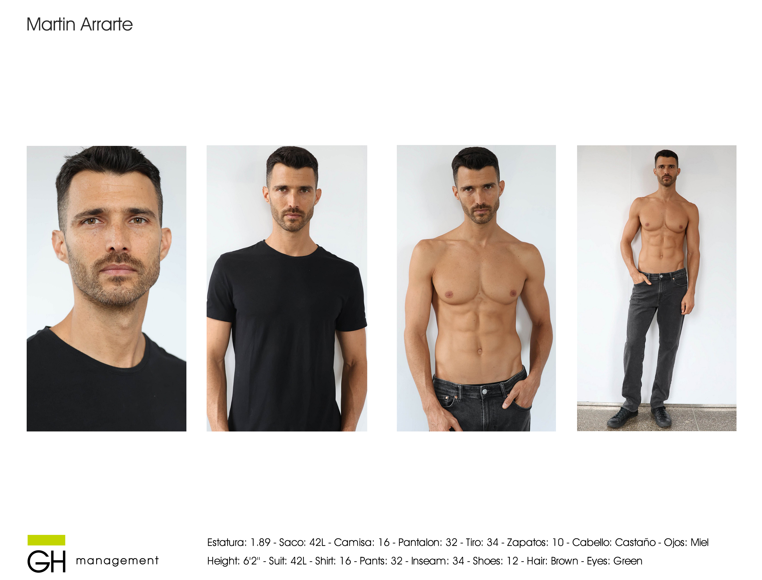 Estatura: 1.89 - Saco: 42L - Camisa: 16 - Pantalon: 32 - Tiro: 34 - Zapatos: 10 - Cabello: CastaƱo - Ojos: Miel