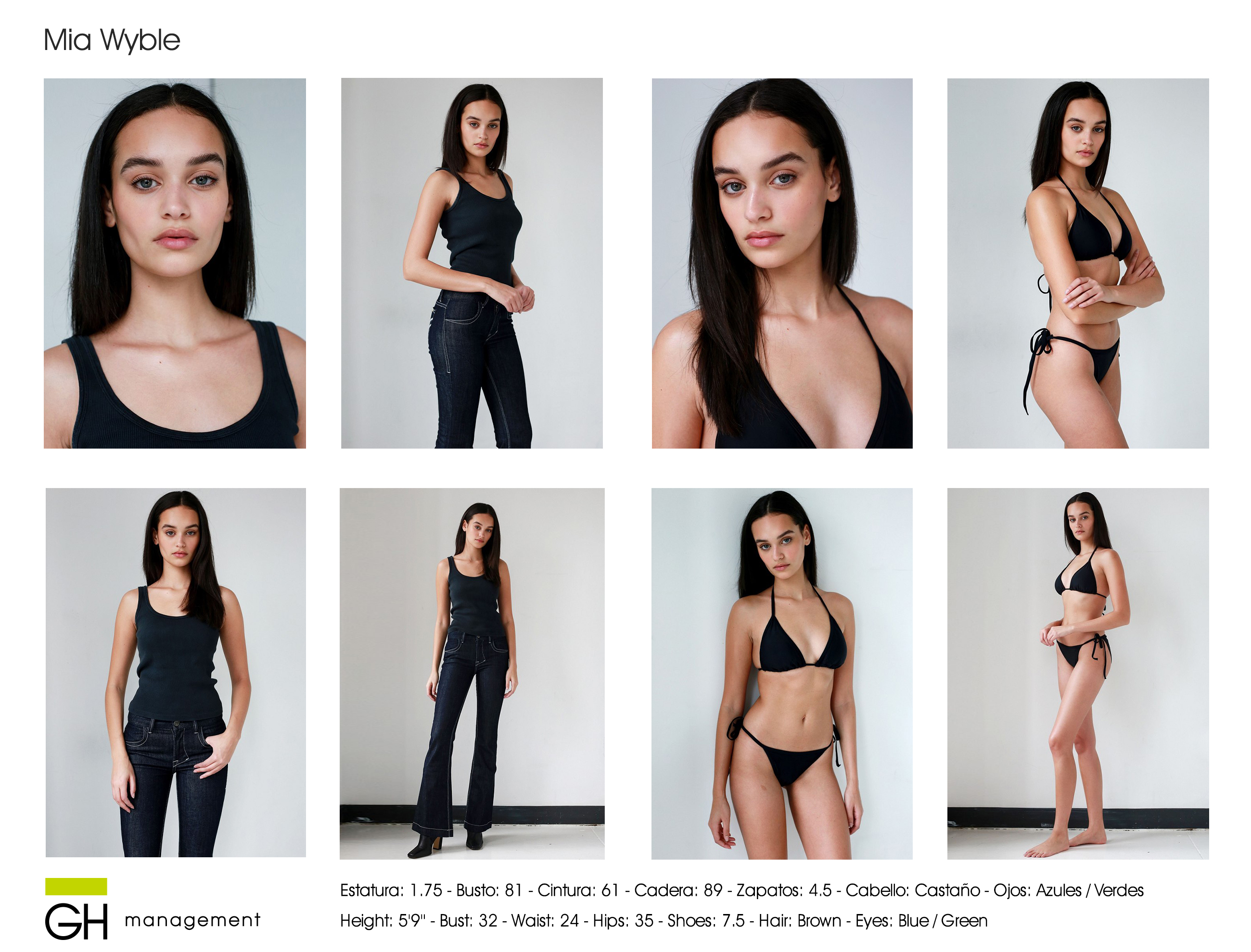 Height: 5'9'' - Bust: 32 - Waist: 24 - Hips: 35 - Shoes: 7.5 - Hair: Brown - Eyes: Blue / Green