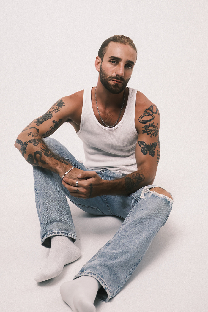 Estatura: 1.88 - Saco: 42L - Camisa: 16 - Pantalon: 32 - Tiro: 34 - Zapatos: 8.5 - Cabello: Rubio - Ojos: Verdes