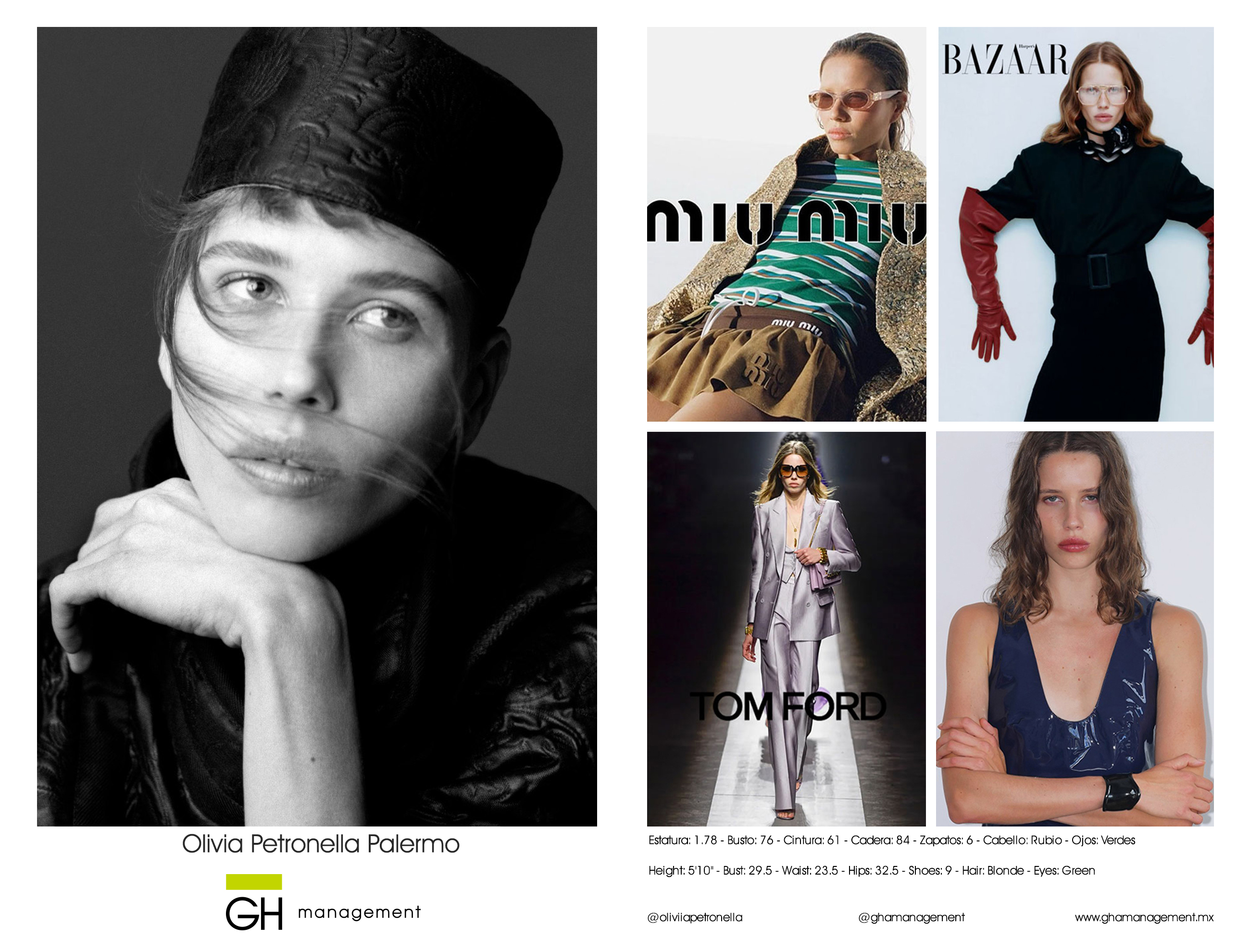 Height: 5'10'' - Bust: 29.5 - Waist: 23.5 - Hips: 32.5 - Shoes: 9 - Hair: Blonde - Eyes: Green