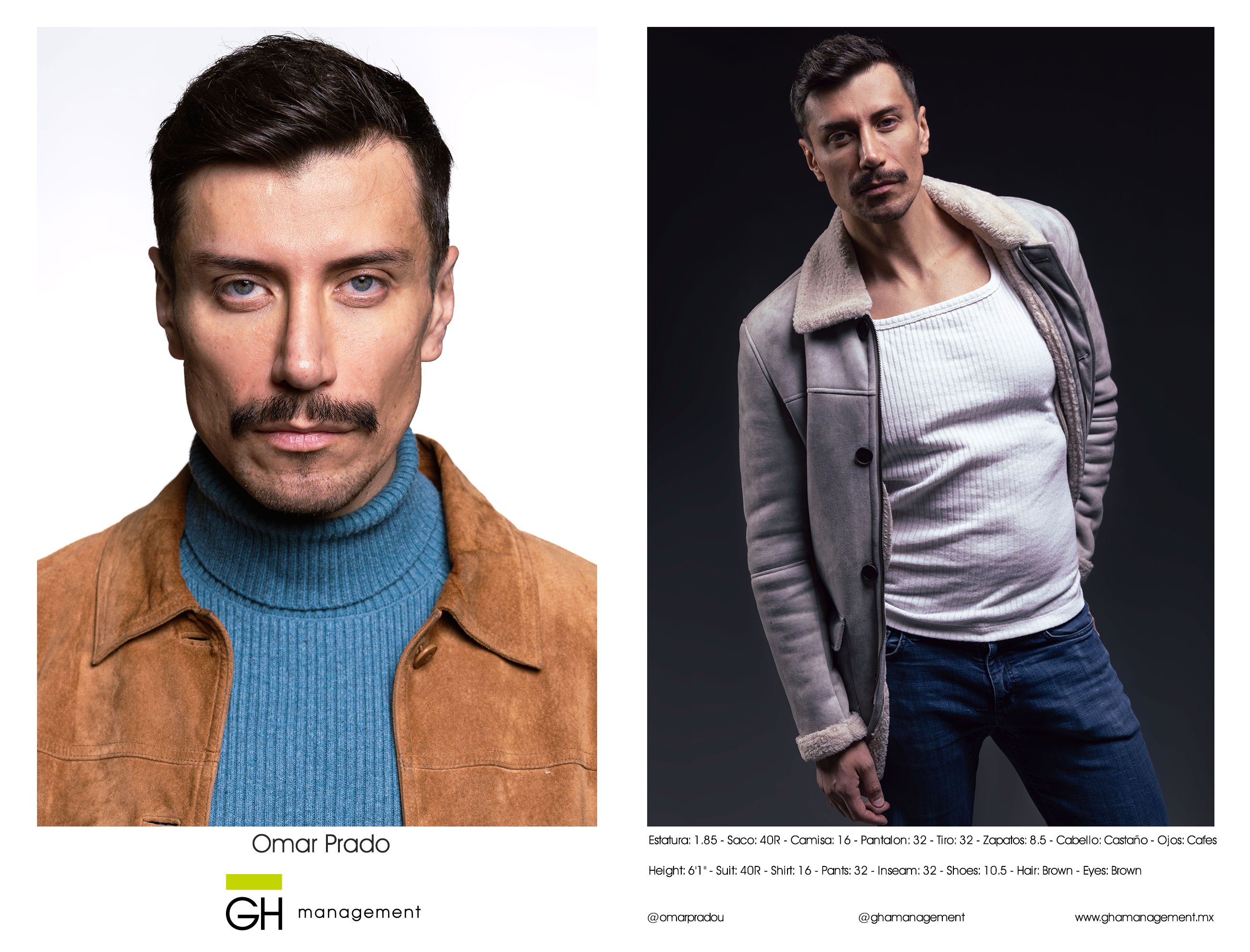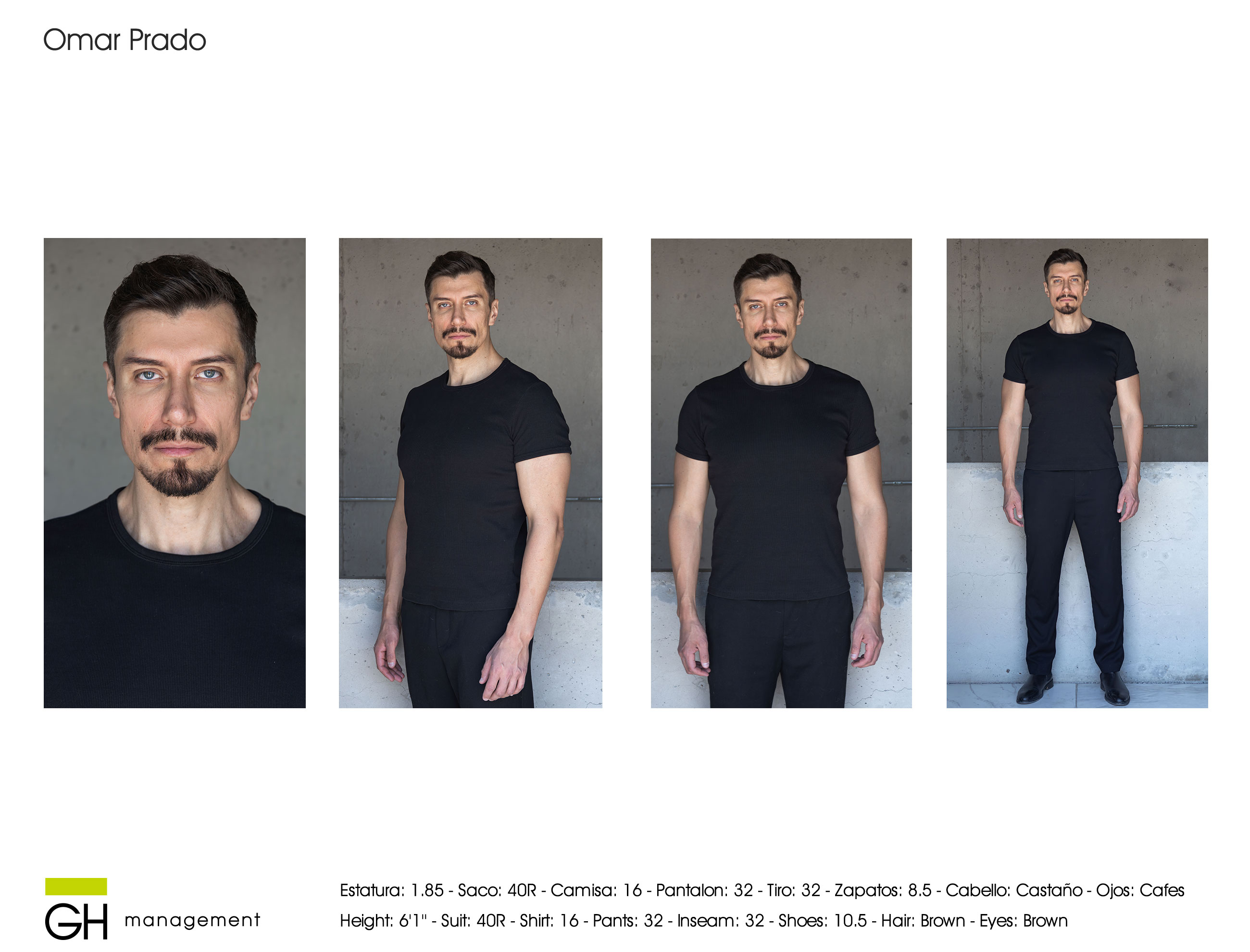 Estatura: 1.85 - Saco: 40R - Camisa: 16 - Pantalon: 32 - Tiro: 32 - Zapatos: 8.5 - Cabello: CastaƱo - Ojos: Cafes