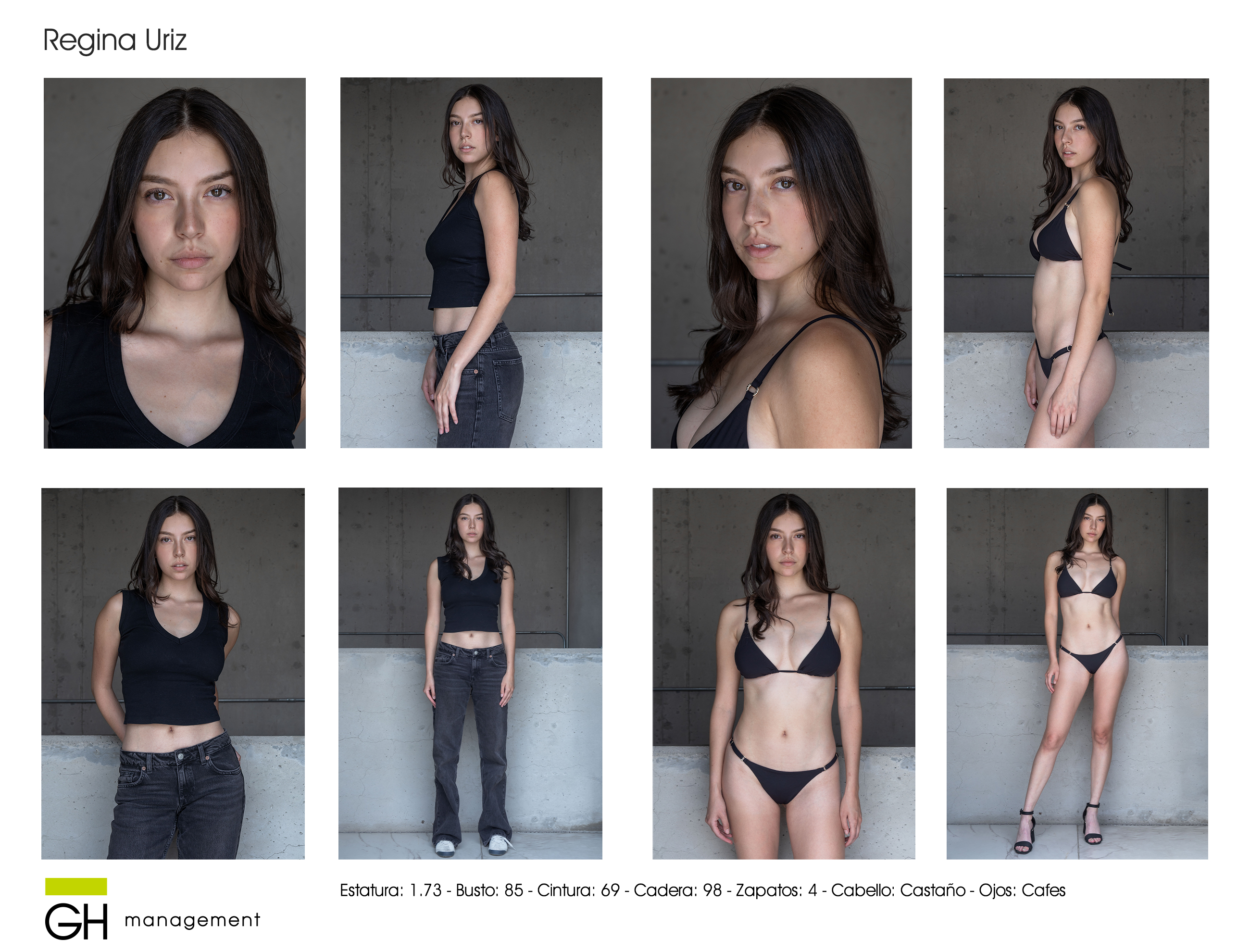 Estatura: 1.73 - Busto: 85 - Cintura: 69 - Cadera: 98 - Zapatos: 4 - Cabello: CastaƱo - Ojos: Cafes