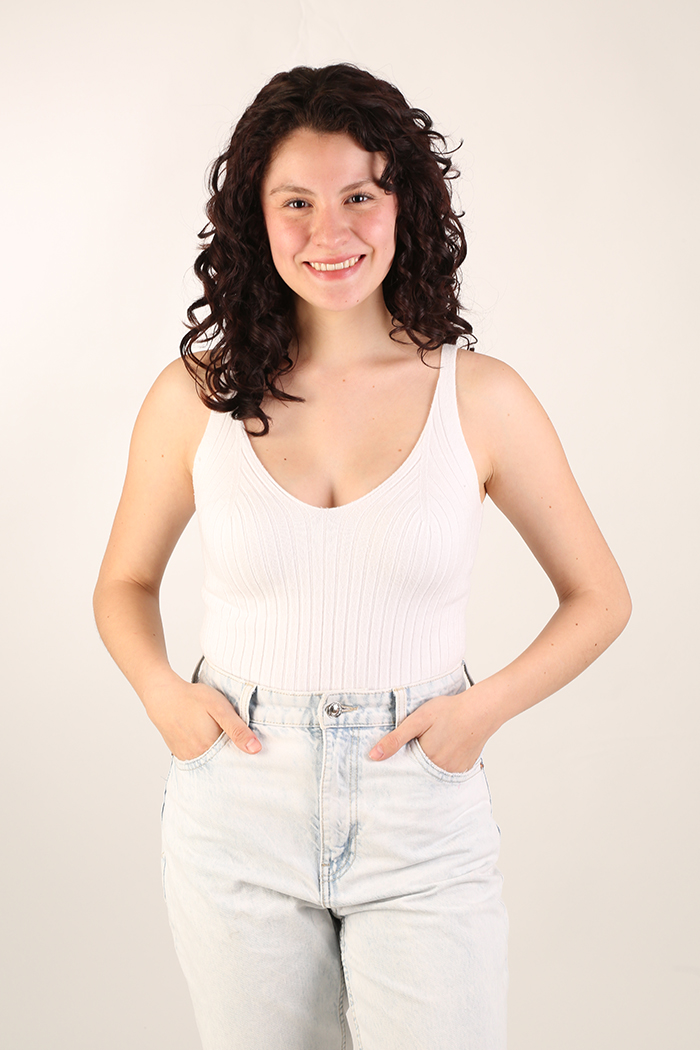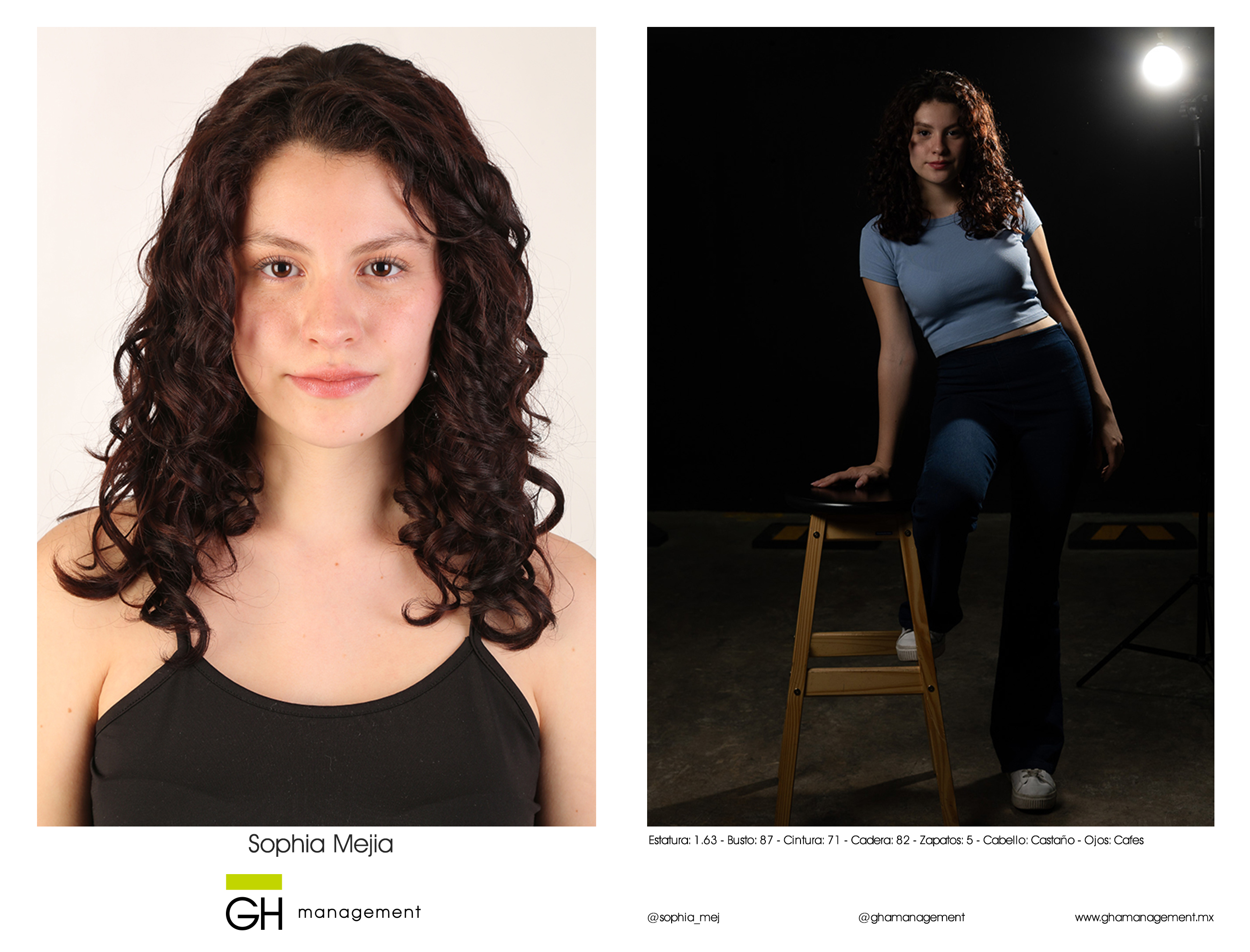 Estatura: 1.63 - Busto: 87 - Cintura: 71 - Cadera: 82 - Zapatos: 5 - Cabello: CastaƱo - Ojos: Cafes