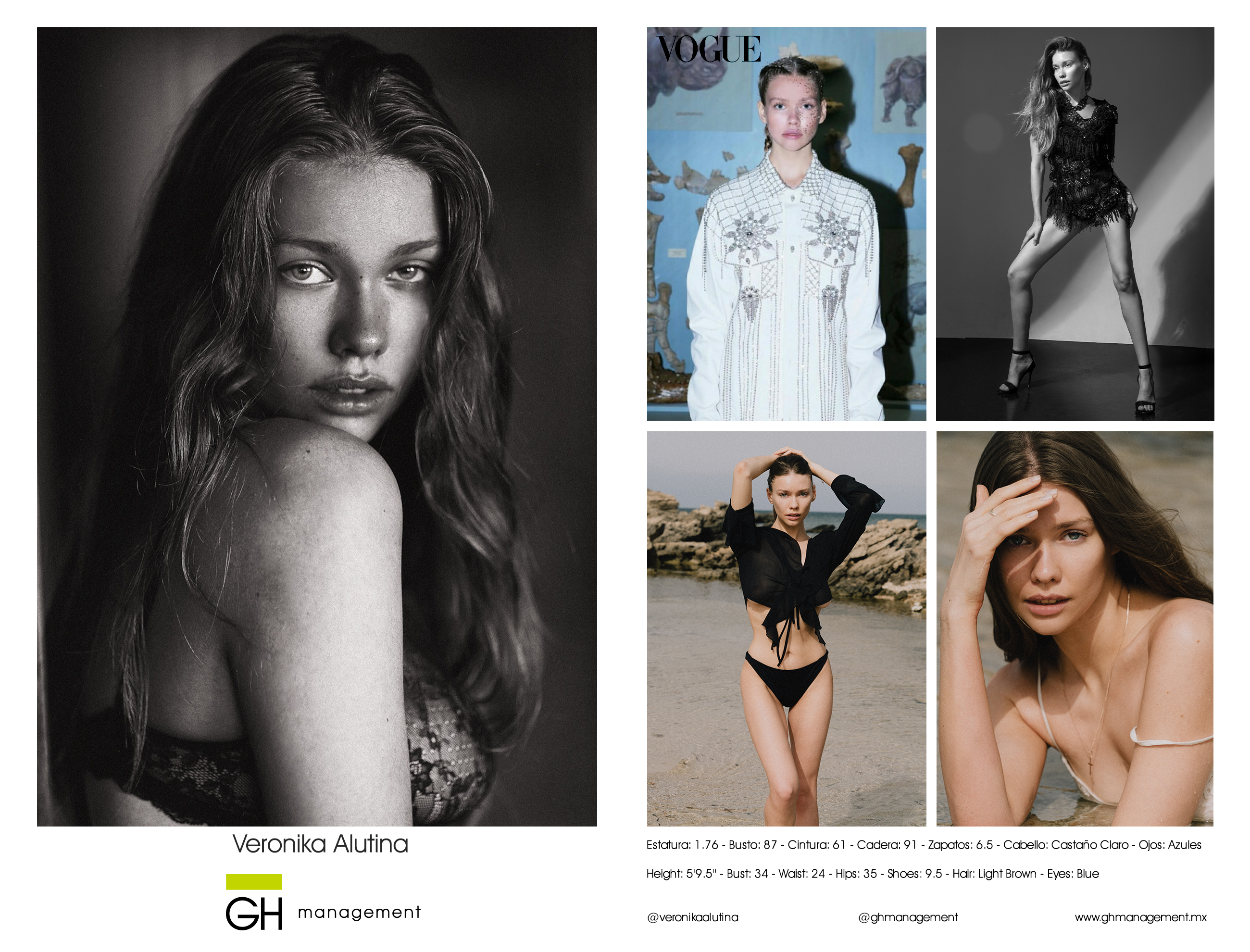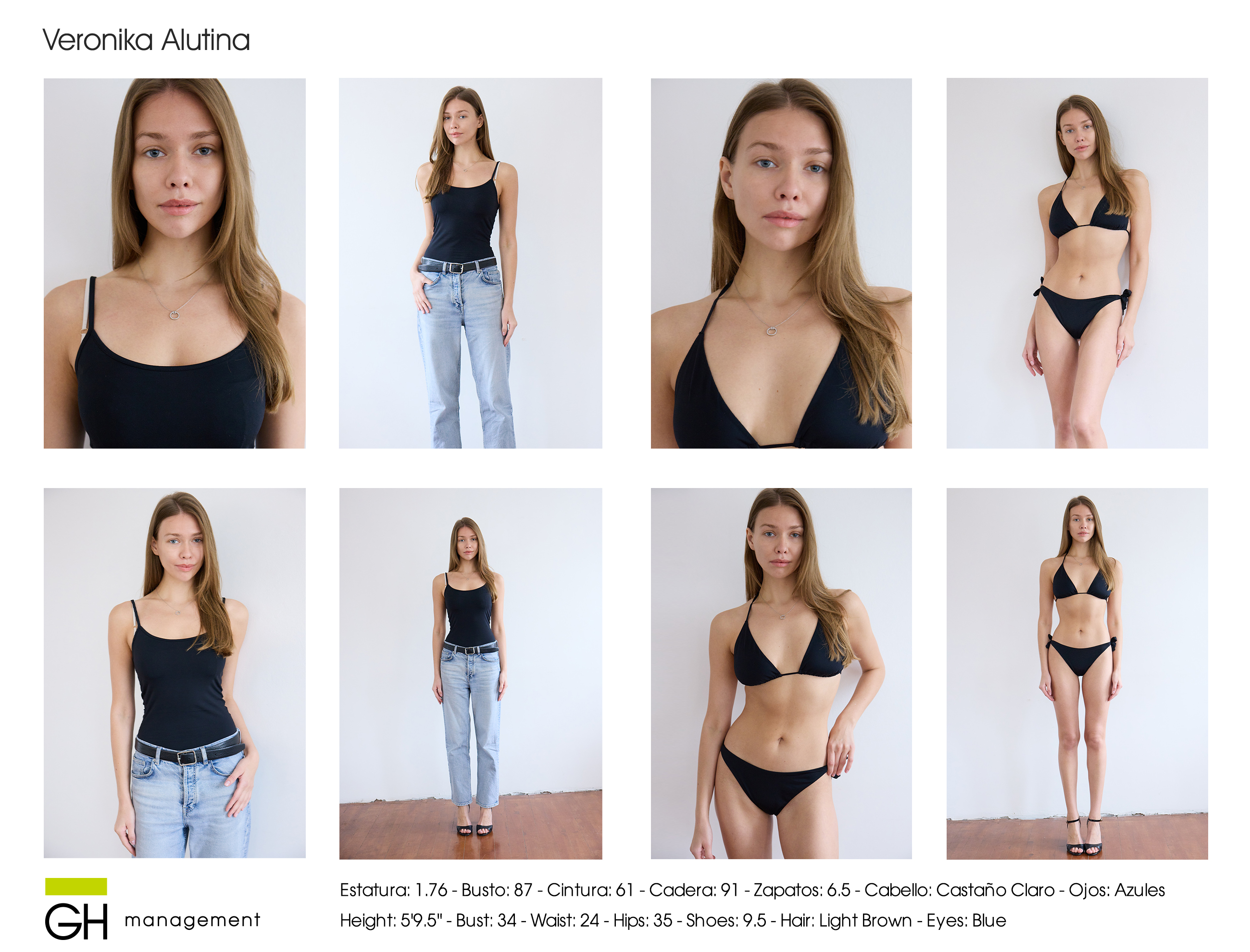 Height: 5'9.5'' - Bust: 34 - Waist: 24 - Hips: 35 - Shoes: 9.5 - Hair: Light Brown - Eyes: Blue