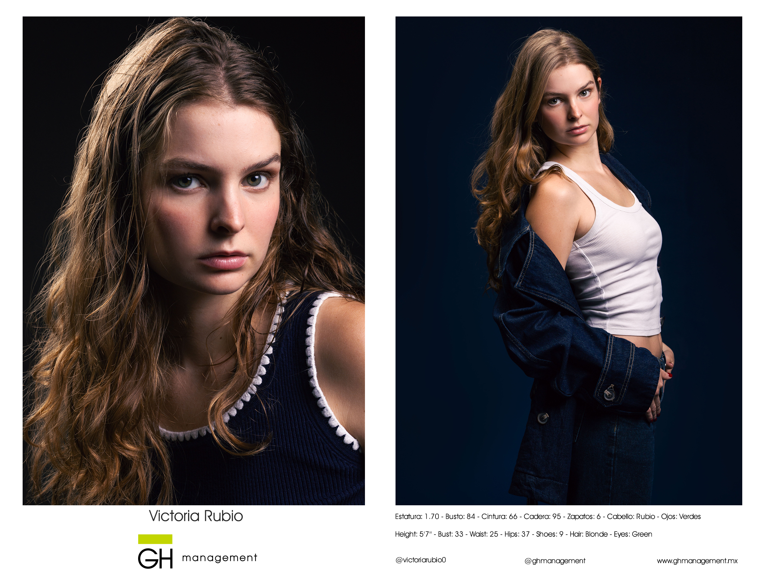 Estatura: 1.70 - Busto: 84 - Cintura: 66 - Cadera: 95 - Zapatos: 6 - Cabello: Rubio - Ojos: Verdes