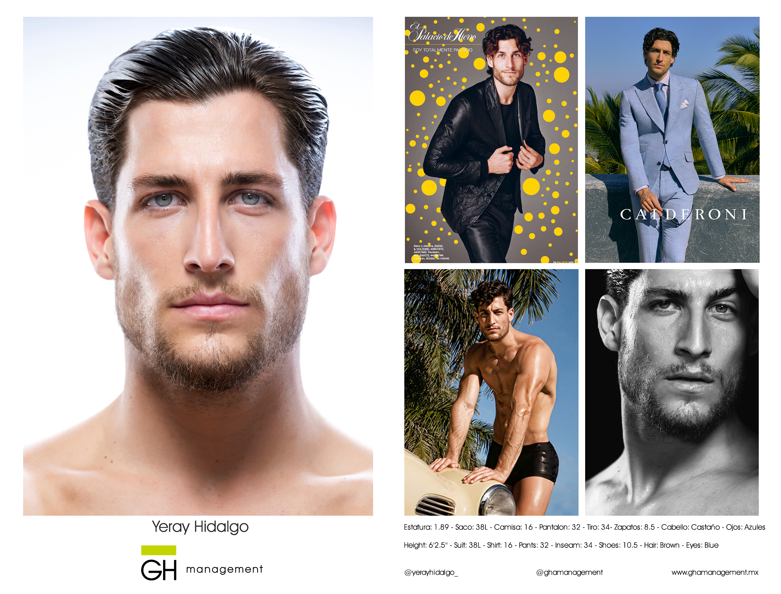 Estatura: 1.89 - Saco: 38L - Camisa: 16 - Pantalon: 32 - Tiro: 34- Zapatos: 8.5 - Cabello: CastaƱo - Ojos: Azules
