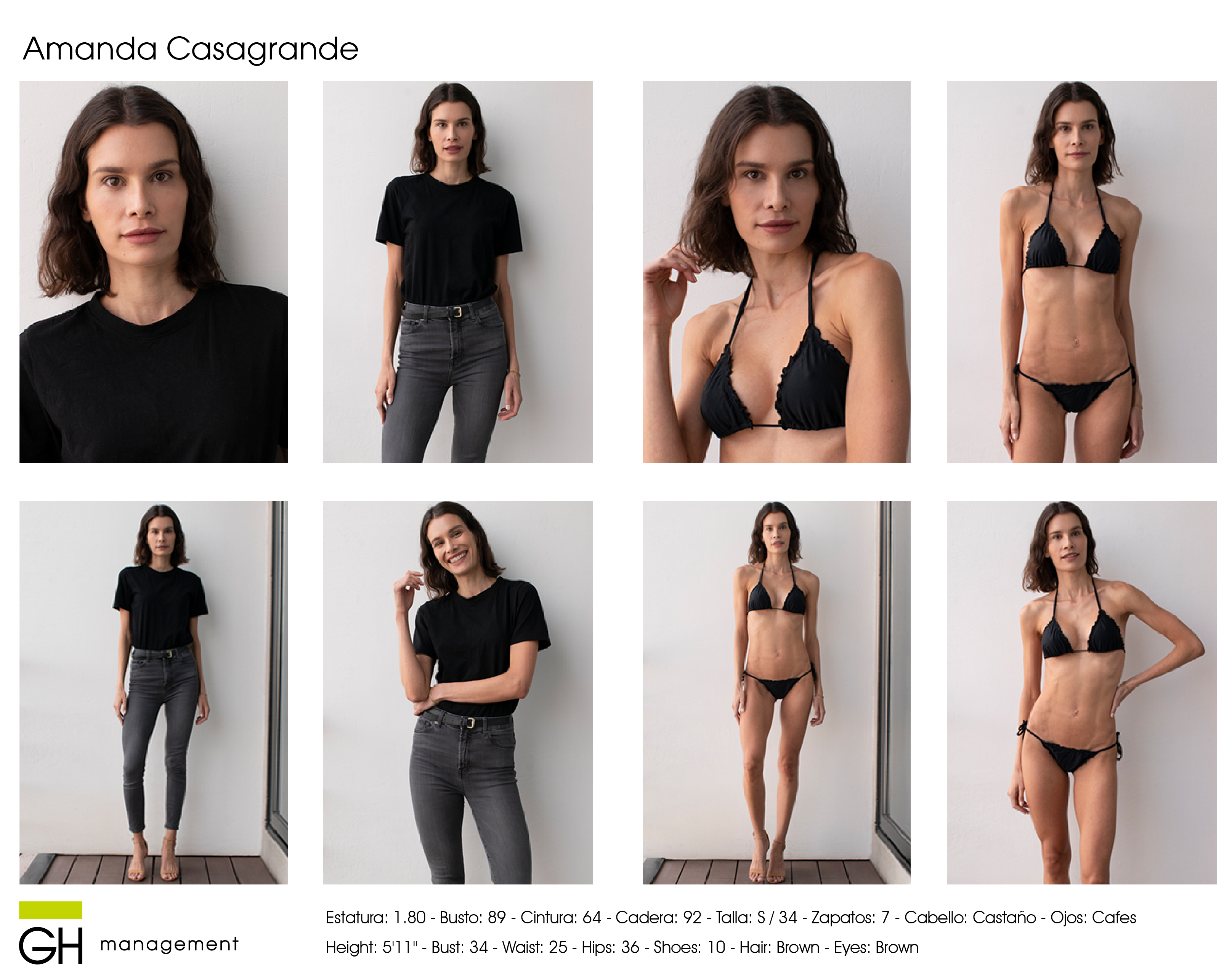 Height: 5'11'' - Bust: 34 - Waist: 25 - Hips: 36 - Shoes: 10 - Hair: Brown - Eyes: Brown