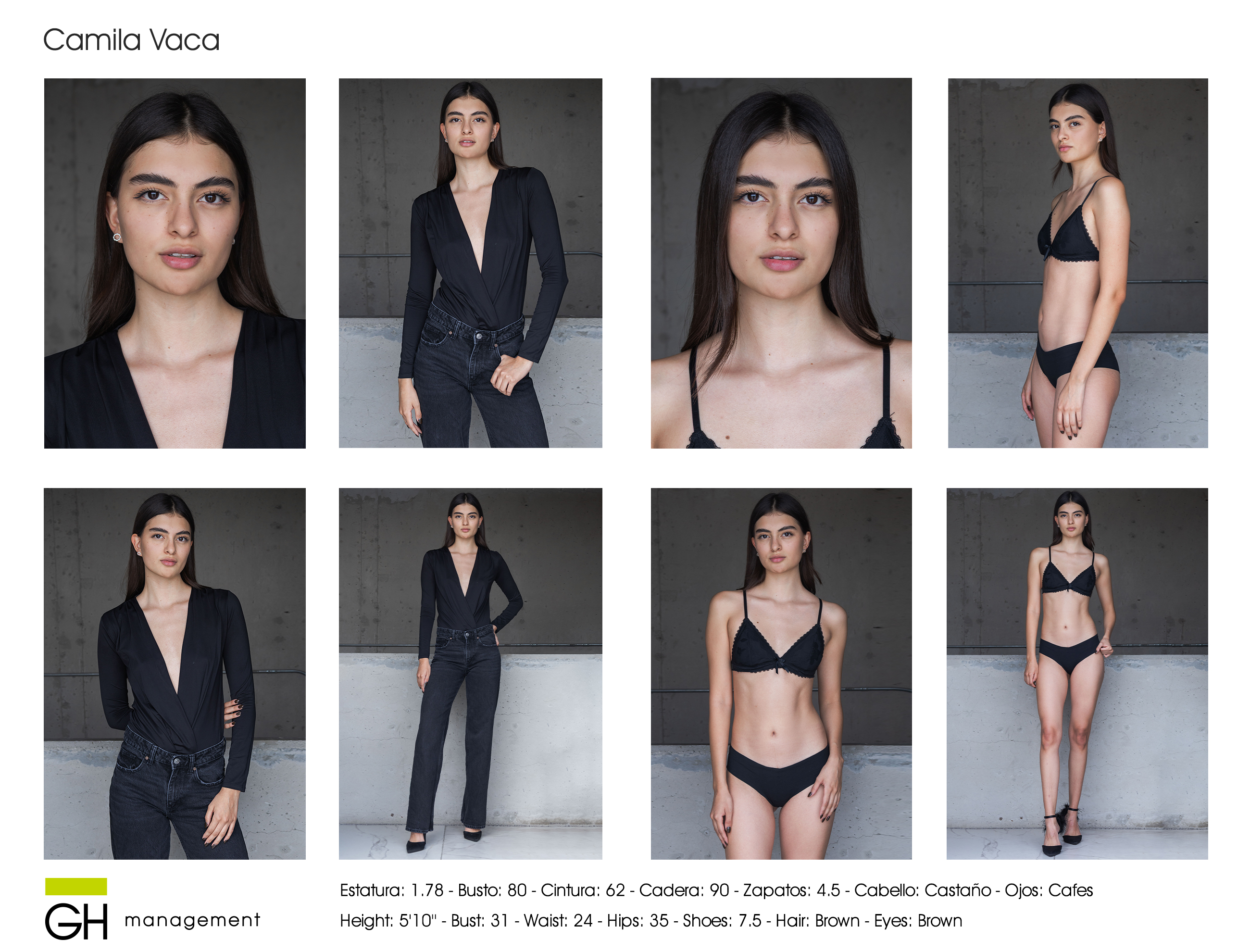 Height: 5'10'' - Bust: 31 - Waist: 24 - Hips: 35 - Shoes: 7.5 - Hair: Brown - Eyes: Brown