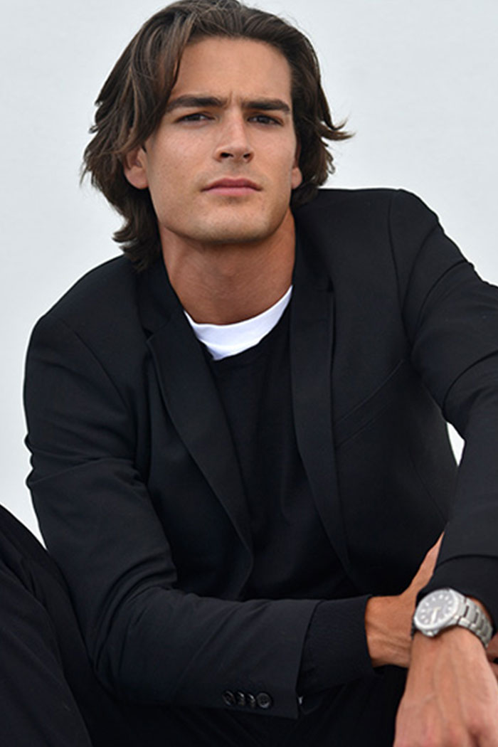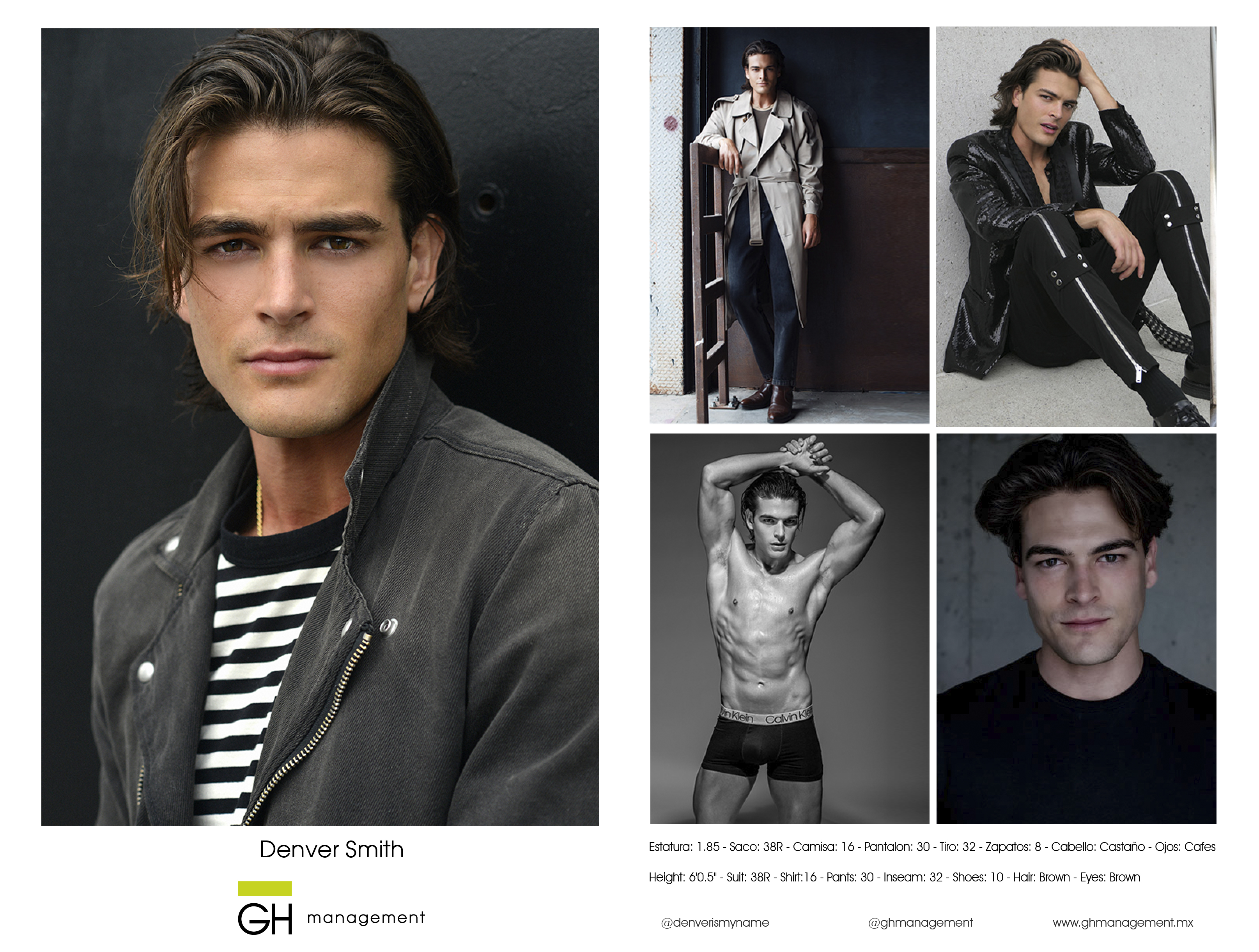 Estatura: 1.85 - Saco: 38R - Camisa: 16 - Pantalon: 30 - Tiro: 32 - Zapatos: 8 - Cabello: CastaƱo - Ojos: Cafes