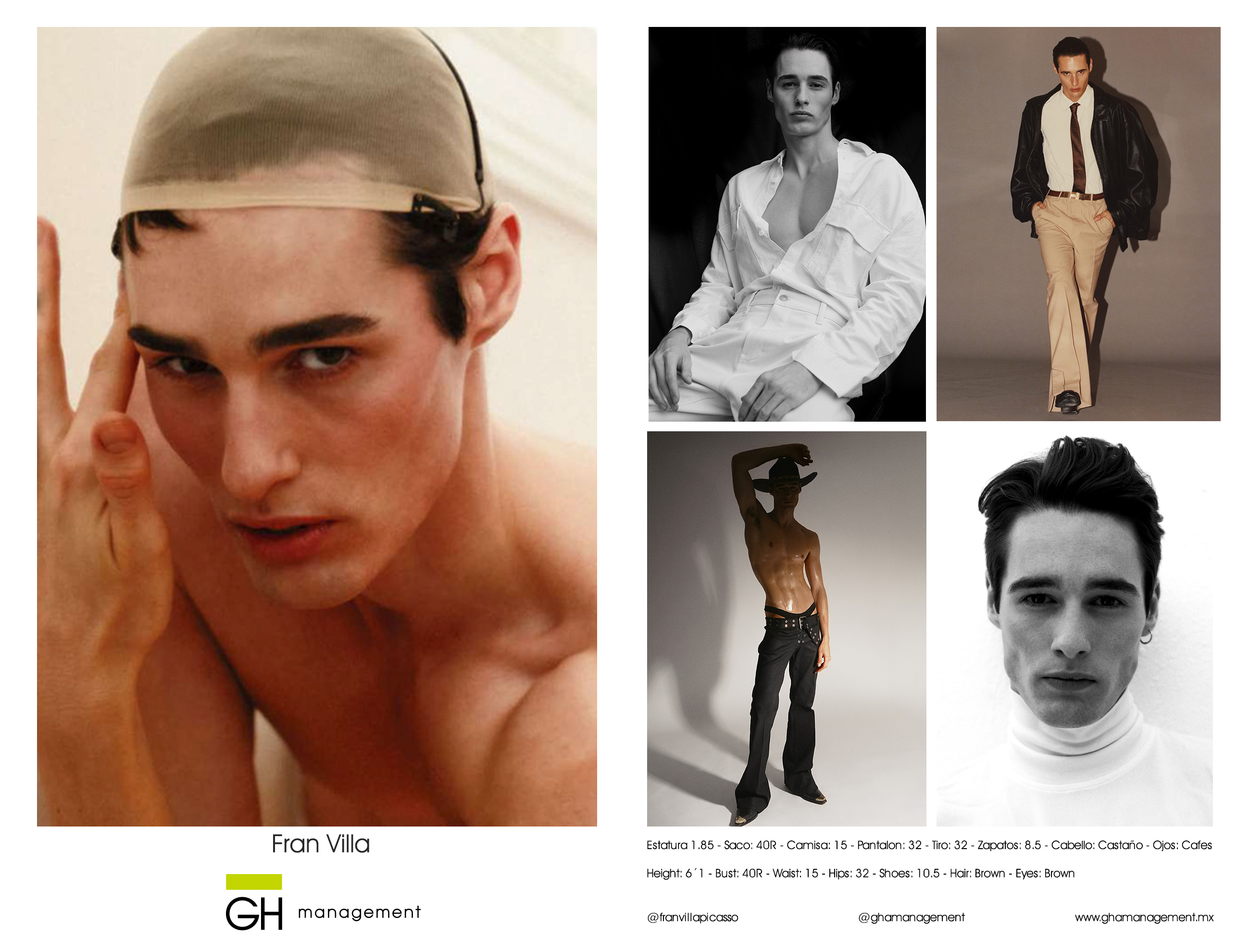 Estatura 1.85 - Saco: 40R - Camisa: 15 - Pantalon: 32 - Tiro: 32 - Zapatos: 8.5 - Cabello: Castaño - Ojos: Cafes
