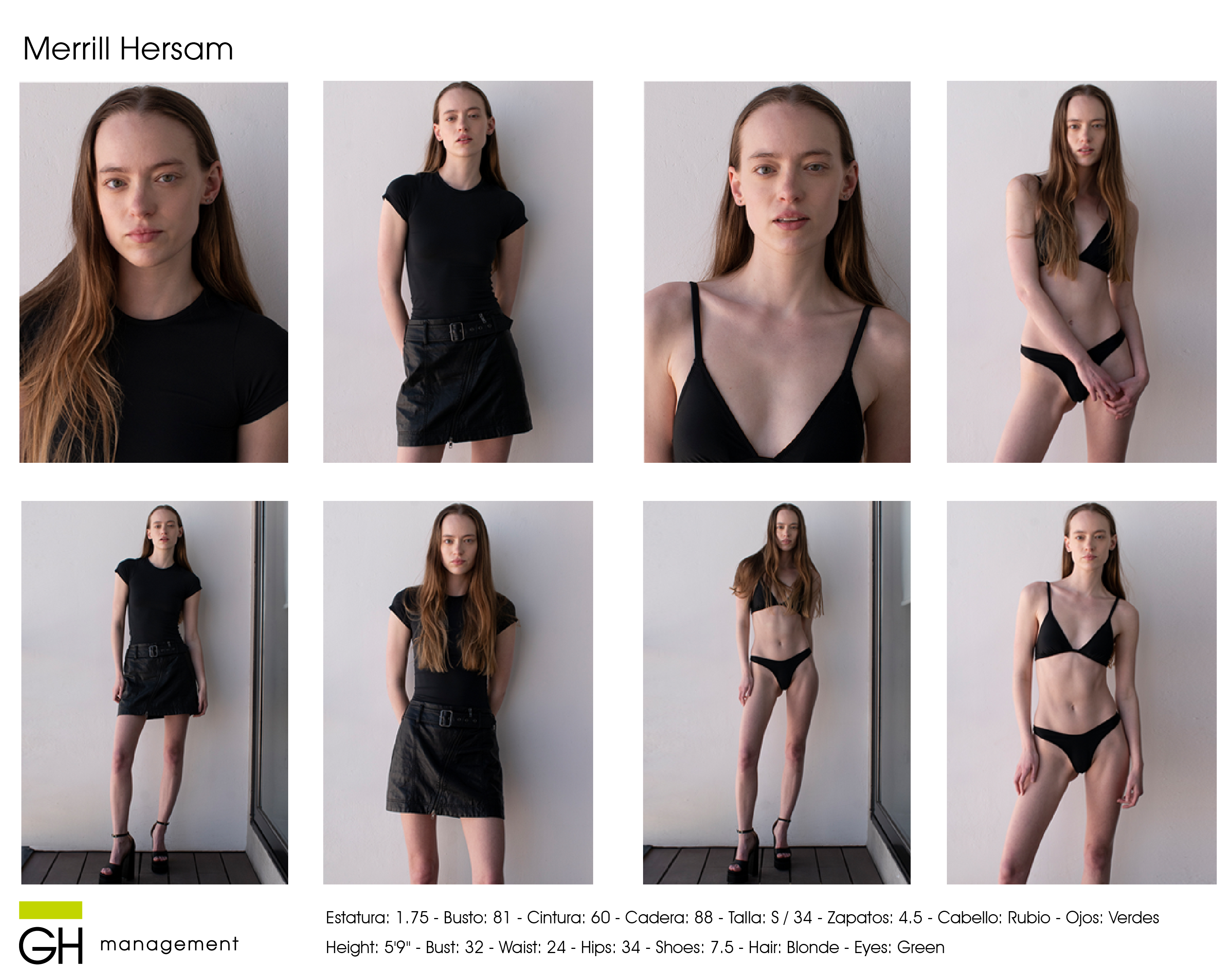 Height: 5'9'' - Bust: 32 - Waist: 24 - Hips: 34 - Shoes: 7.5 - Hair: Blonde - Eyes: Green