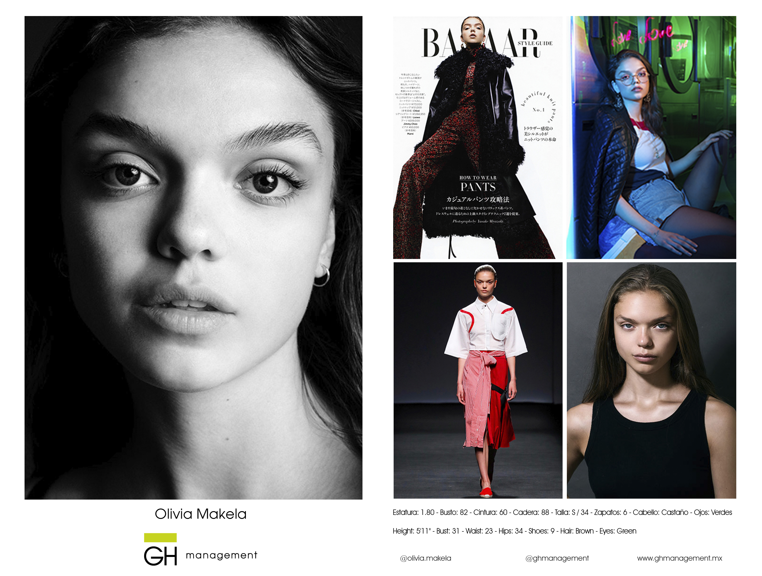 Estatura: 1.80 - Busto: 82 - Cintura: 60 - Cadera: 88 - Zapatos: 6 - Cabello: CastaƱo - Ojos: Verdes