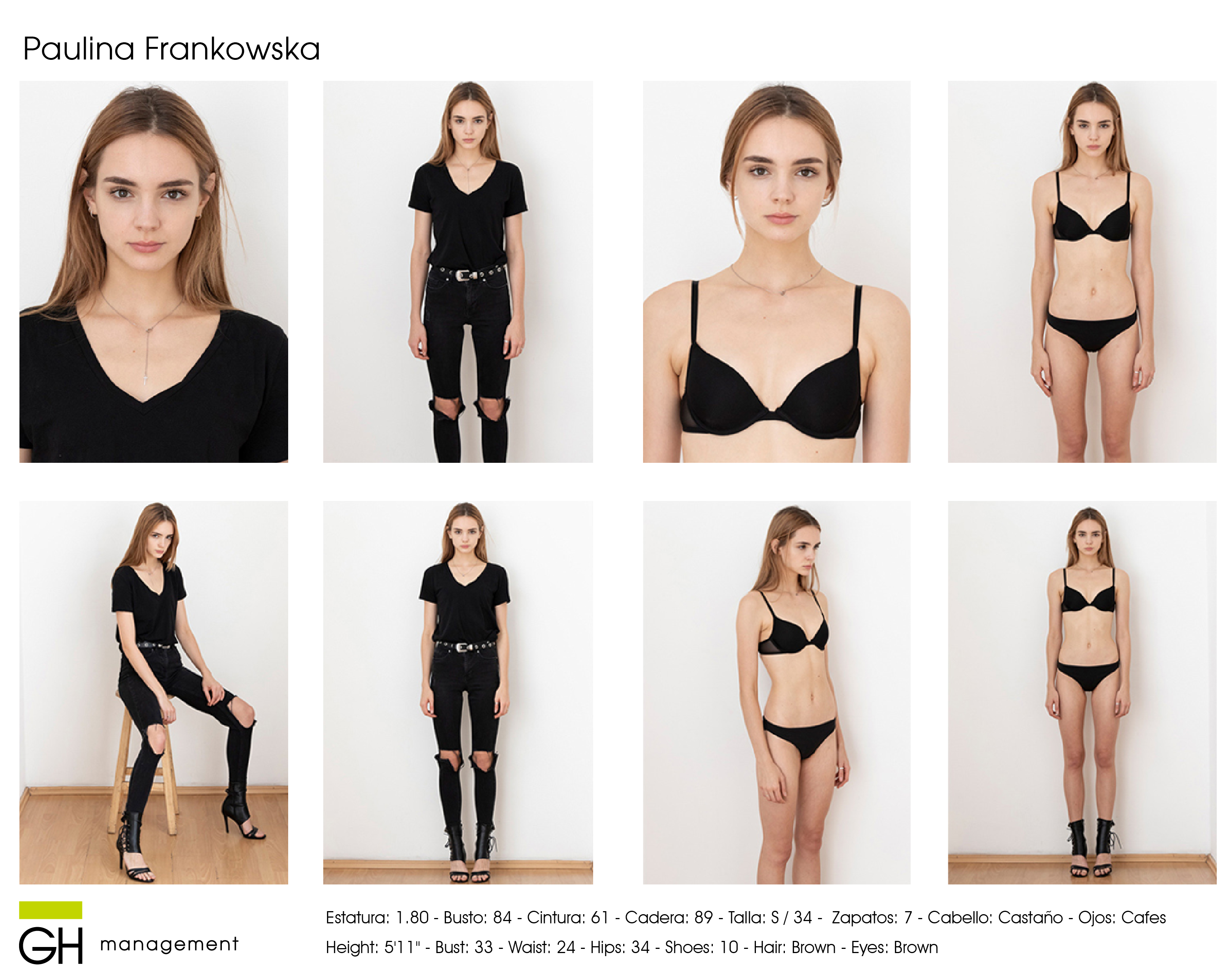 Height: 5'11'' - Bust: 33 - Waist: 24 - Hips: 34 - Shoes: 10 - Hair: Brown - Eyes: Brown