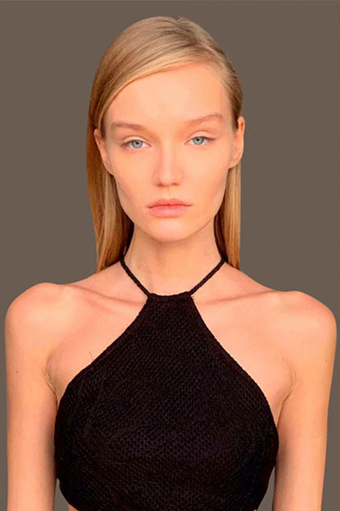 Estatura: 1.79 - Busto: 78 - Cintura: 57 - Cadera: 87 - Zapatos: 5.5 - Cabello: CastaƱo Claro - Ojos: Azules