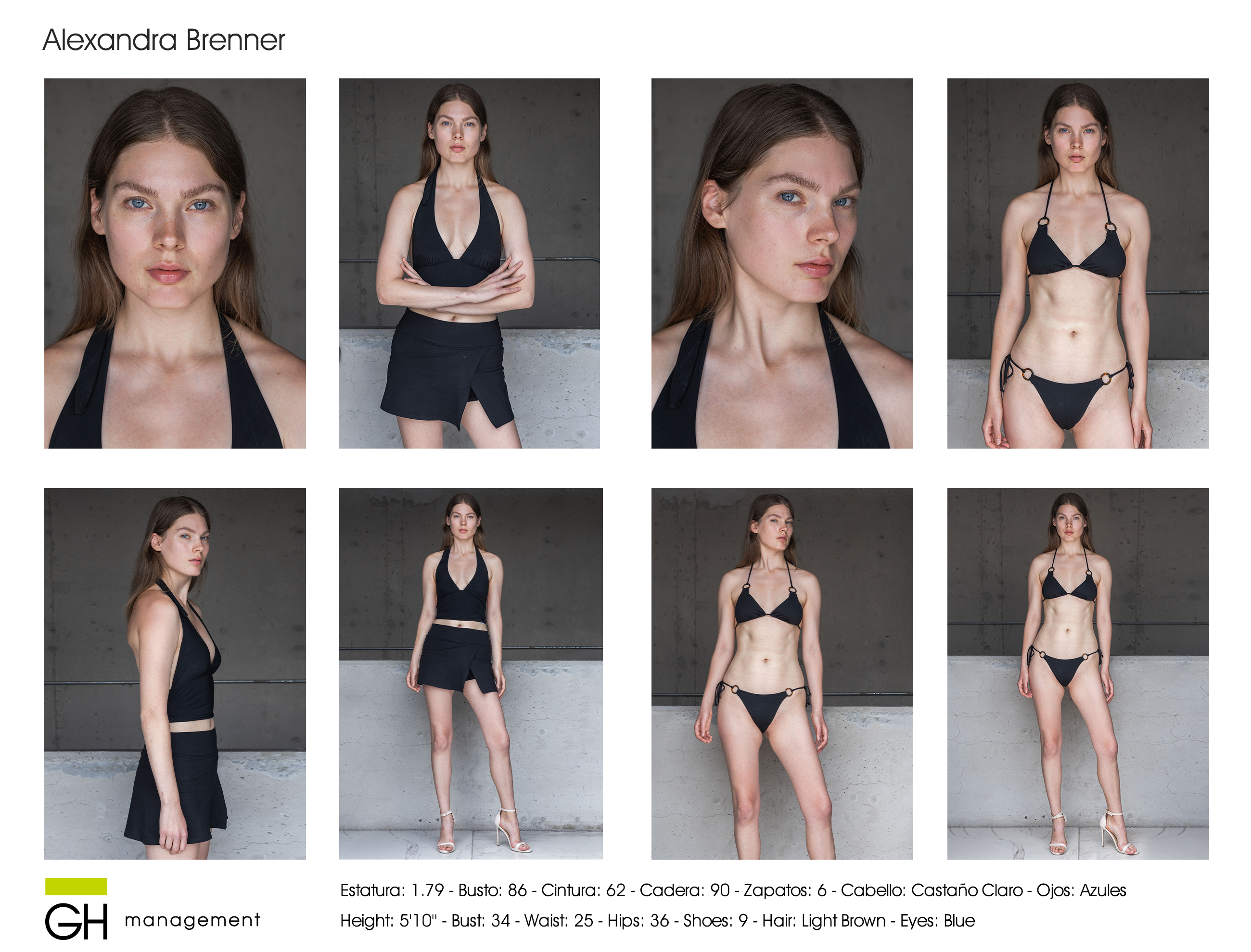 Estatura: 1.79 - Busto: 86 - Cintura: 62 - Cadera: 90 - Zapatos: 6 - Cabello: CastaƱo Claro - Ojos: Azules