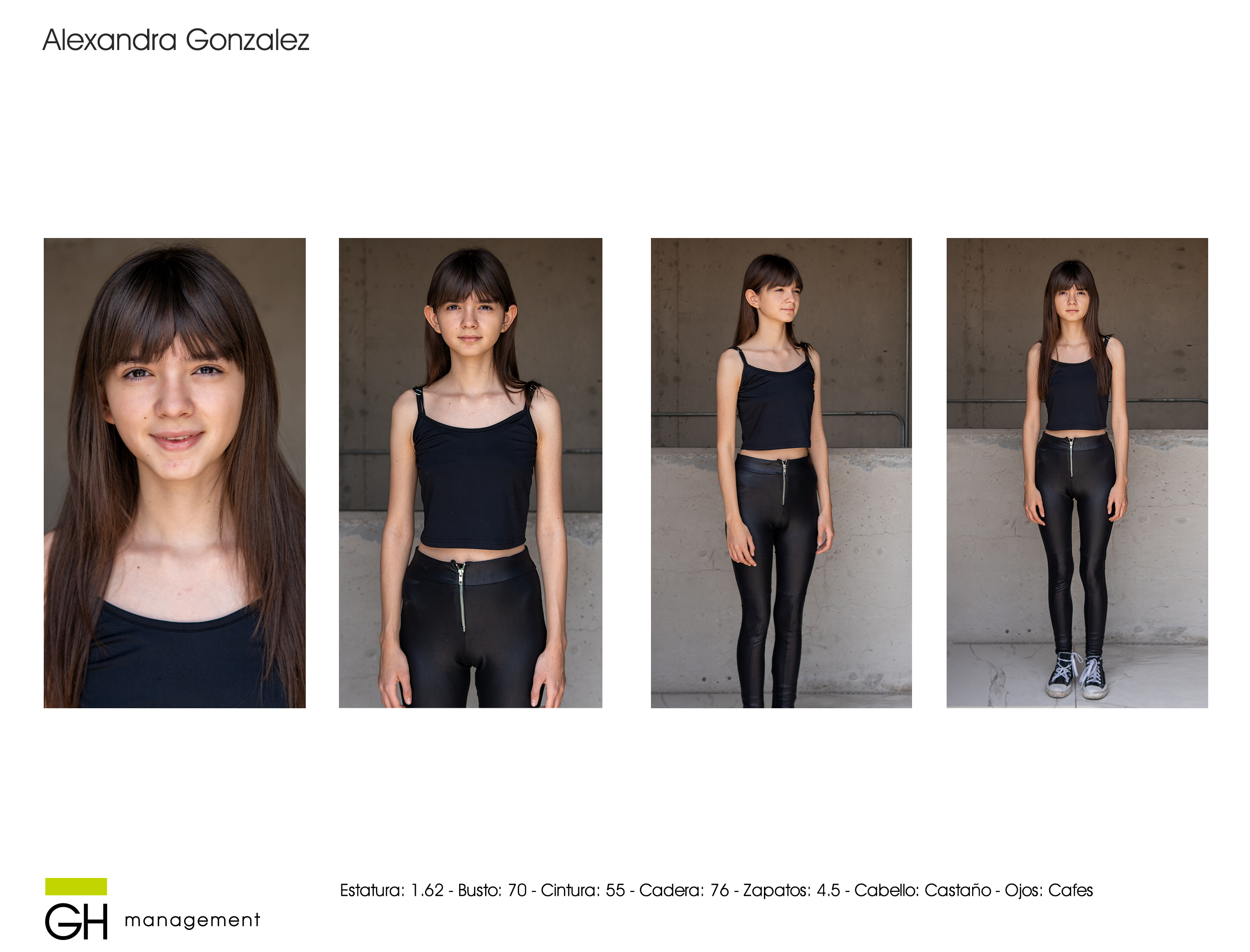 Estatura: 1.62 - Busto: 70 - Cintura: 55 - Cadera: 76 - Zapatos: 4.5 - Cabello: CastaƱo - Ojos: Cafes