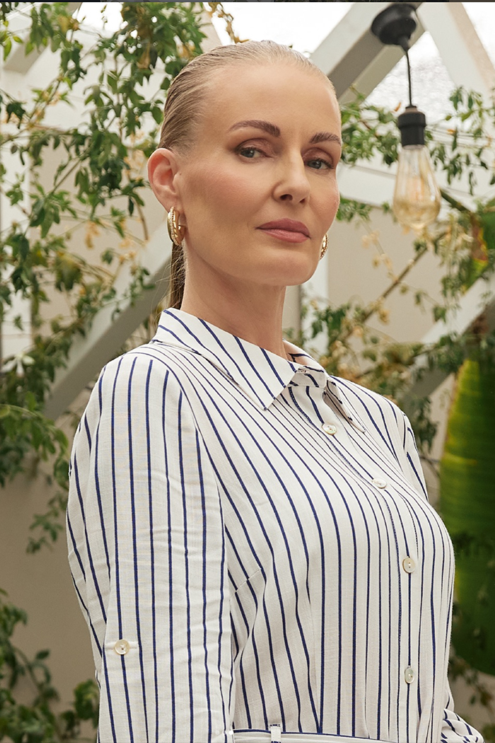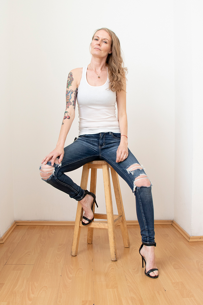 Estatura: 1.75 - Busto: 87 - Cintura: 62 - Cadera: 91 - Zapatos: 4 - Cabello: Rubio - Ojos: Azules