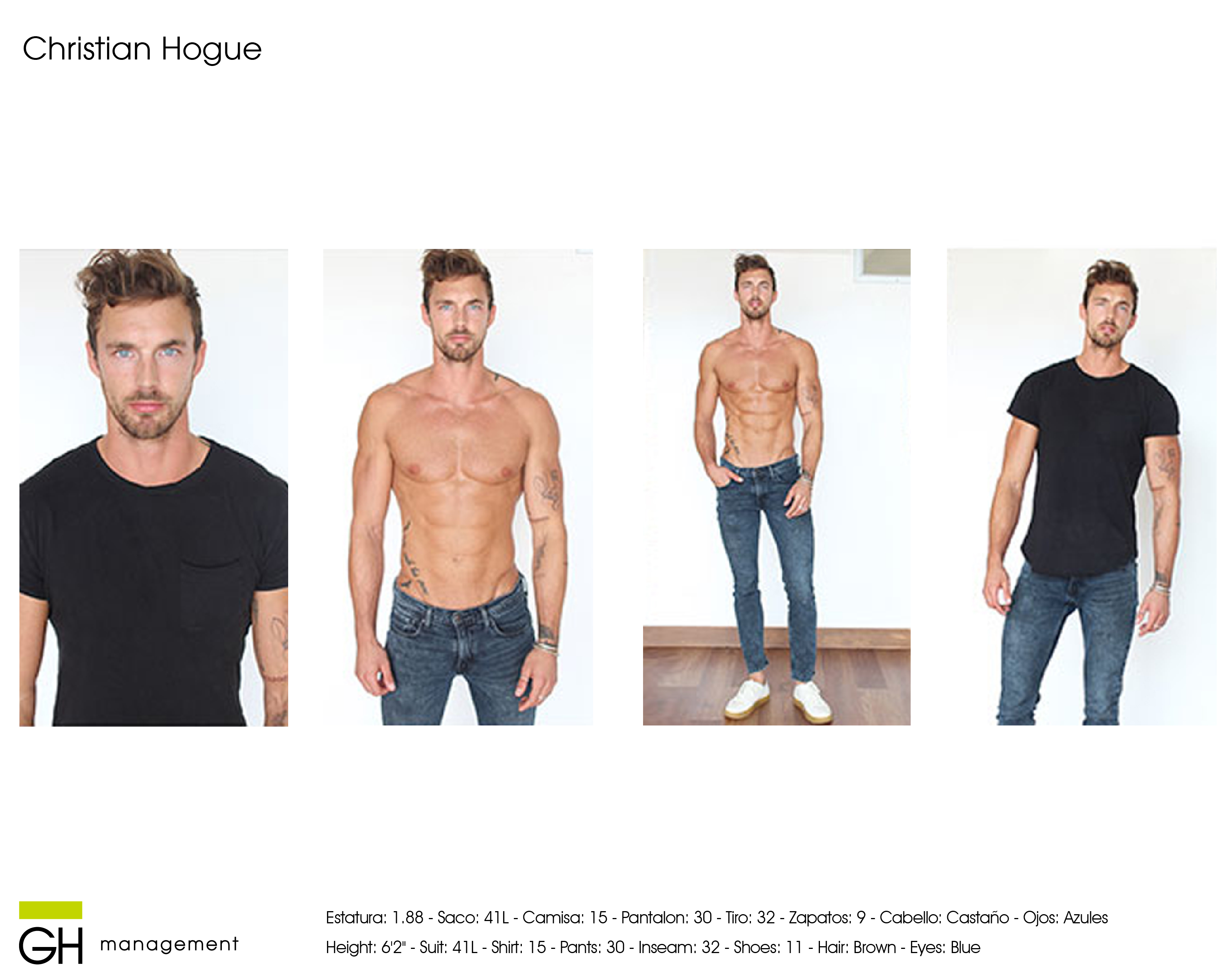 Estatura: 1.88 - Saco: 41L - Camisa: 15 - Pantalon: 30 - Tiro: 32 - Zapatos: 9 - Cabello: CastaƱo - Ojos: Azules