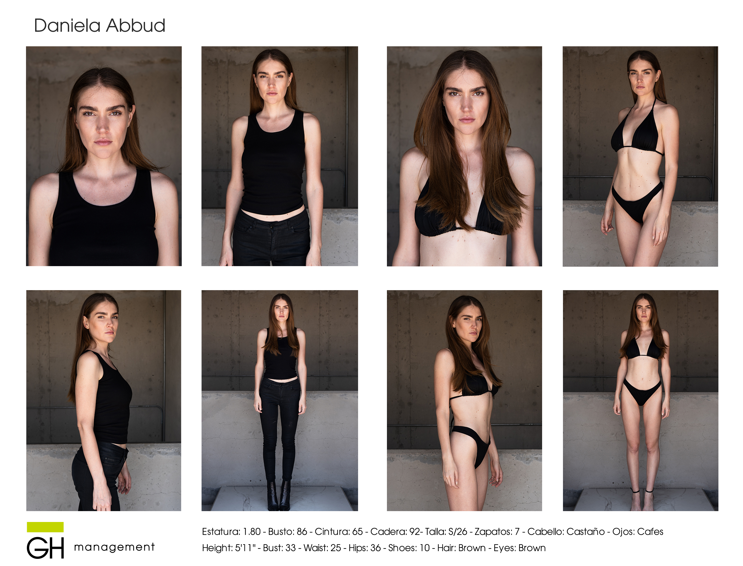 Estatura: 1.80 - Busto: 86 - Cintura: 65 - Cadera: 92 - Zapatos: 7 - Cabello: CastaƱo - Ojos: Cafes
