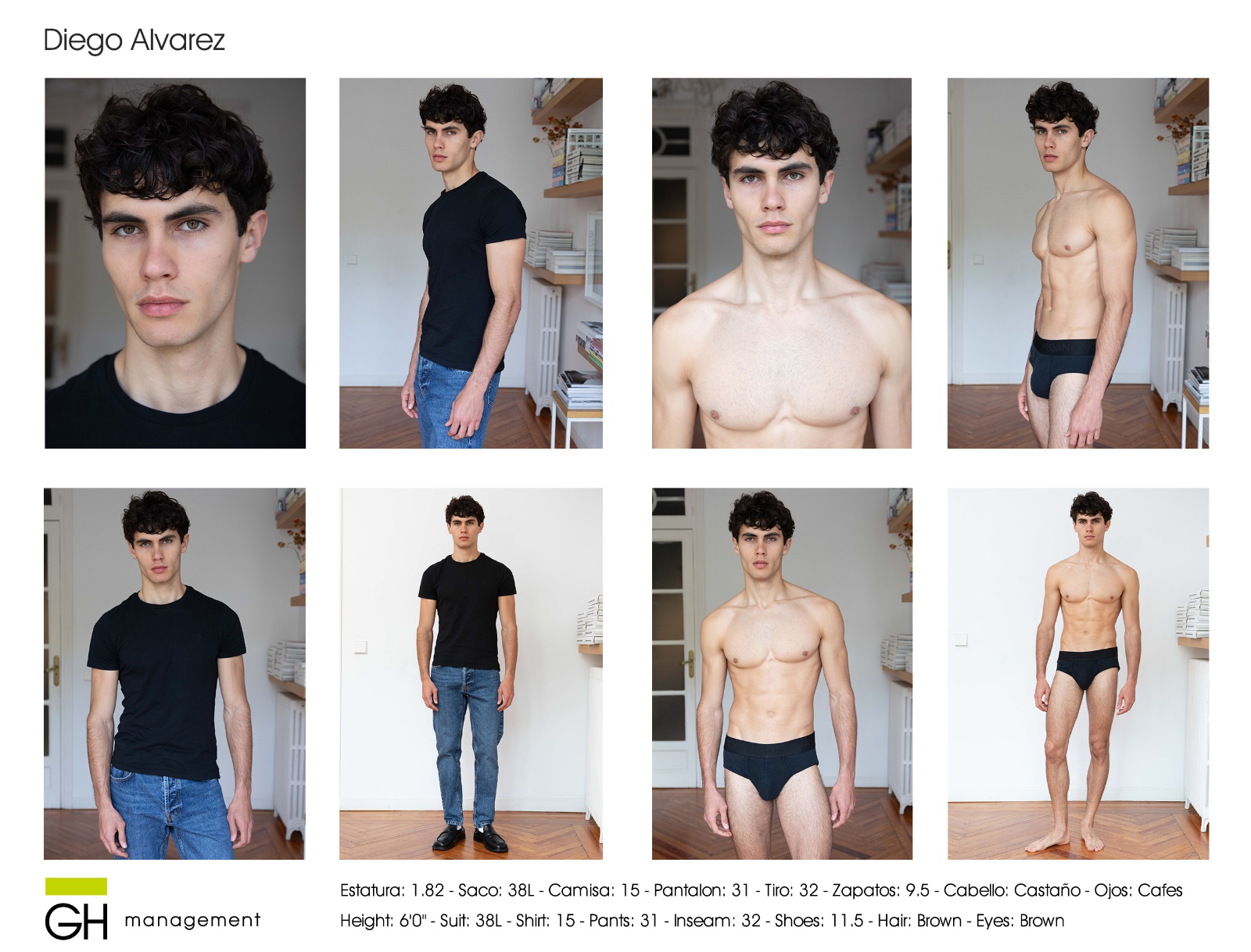 Estatura: 1.82 - Saco: 38L - Camisa: 15 - Pantalon: 31 - Tiro: 32 - Zapatos: 9.5 - Cabello: CastaƱo - Ojos: Cafes