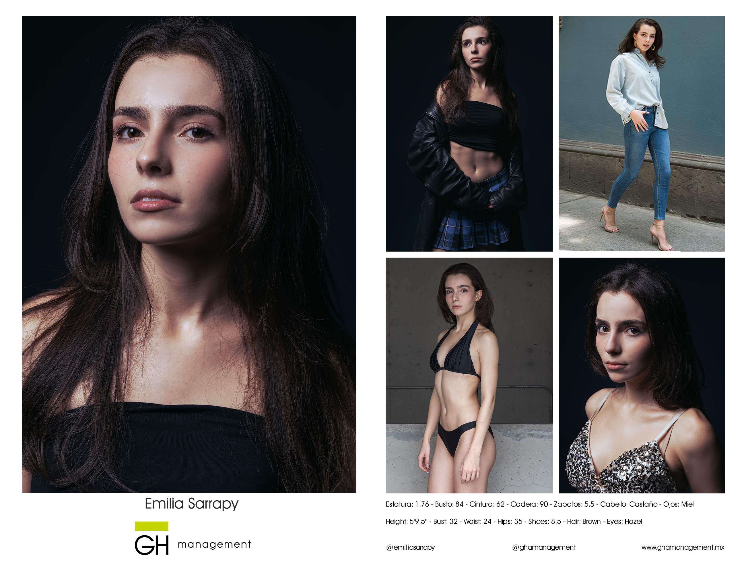 Estatura: 1.76 - Busto: 84 - Cintura: 62 - Cadera: 90 - Zapatos: 5.5 - Cabello: CastaƱo - Ojos: Miel