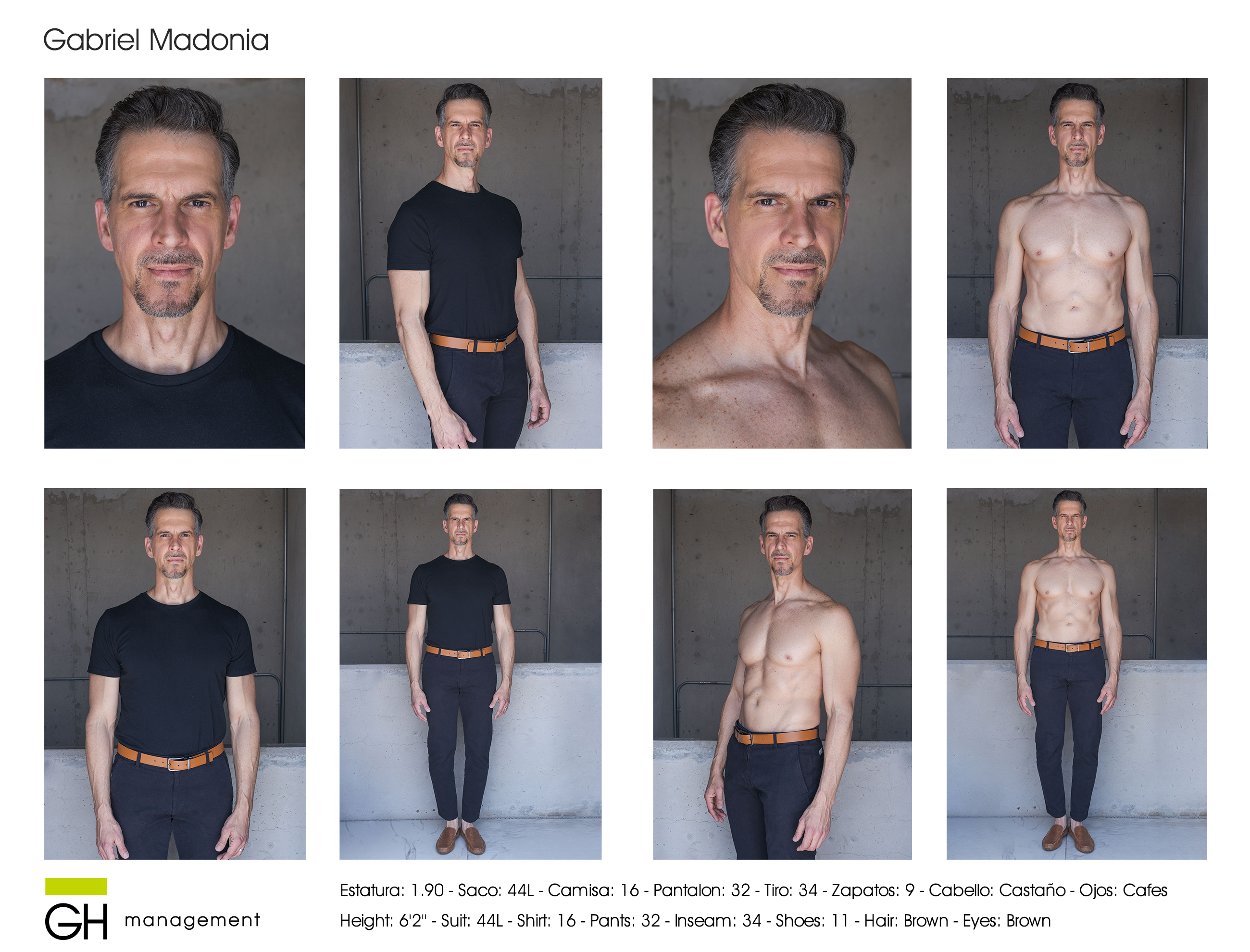 Estatura: 1.90 - Saco: 44L - Camisa: 16 - Pantalon: 32 - Tiro: 34 - Zapatos: 10 - Cabello: CastaƱo - Ojos: Cafes