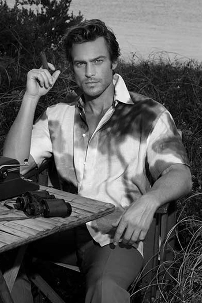 Estatura: 1.84 - Saco: 40R - Camisa: 15.5 - Pantalon: 32 - Tiro: 32 - Zapatos: 8.5 - Cabello: Rubio - Ojos: Azules