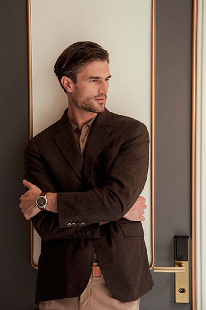 Estatura: 1.87 - Saco: 40R - Camisa: 15.5 - Pantalon: 32 - Tiro: 34 - Zapatos: 8.5 - Cabello: CastaƱo - Ojos: Verdes