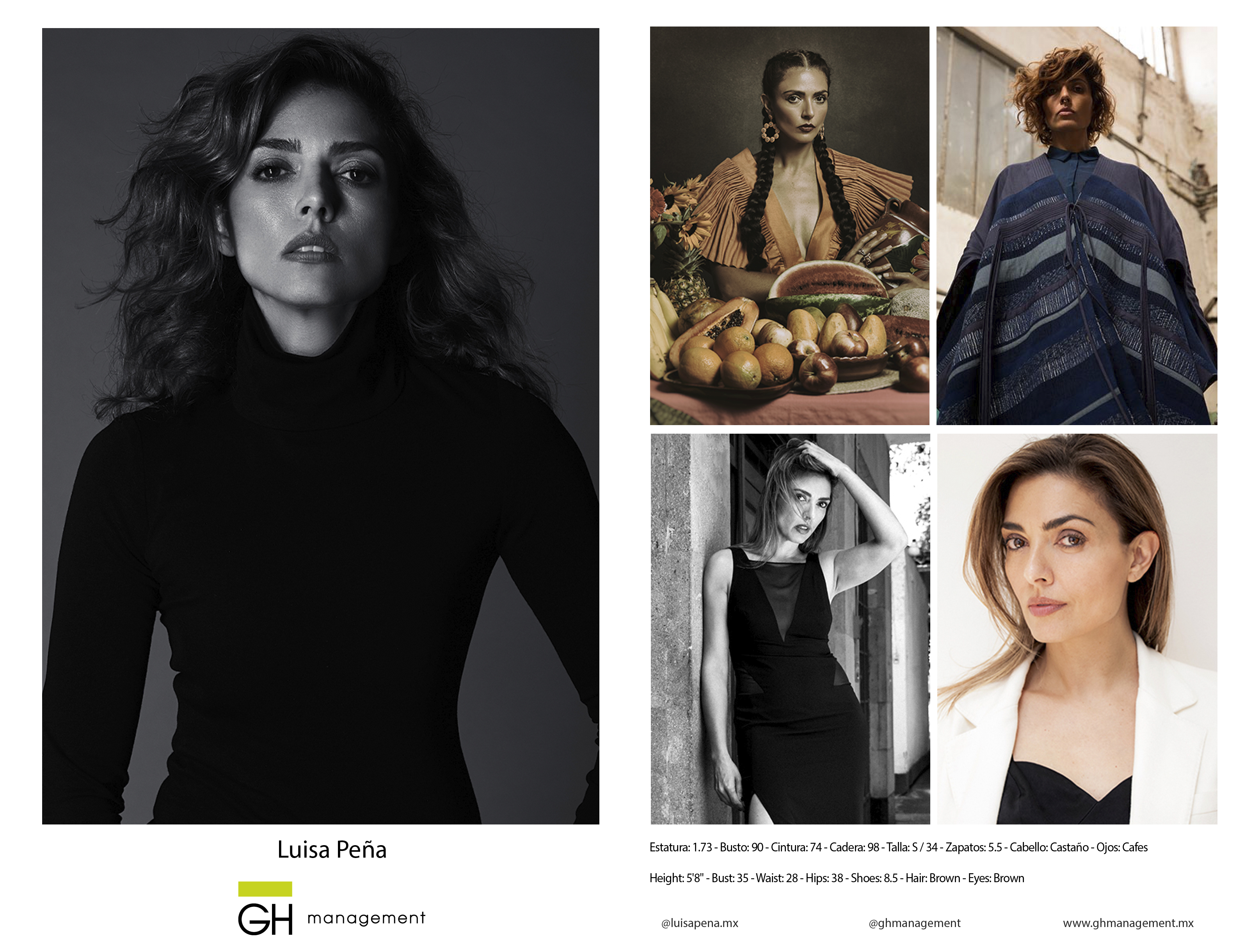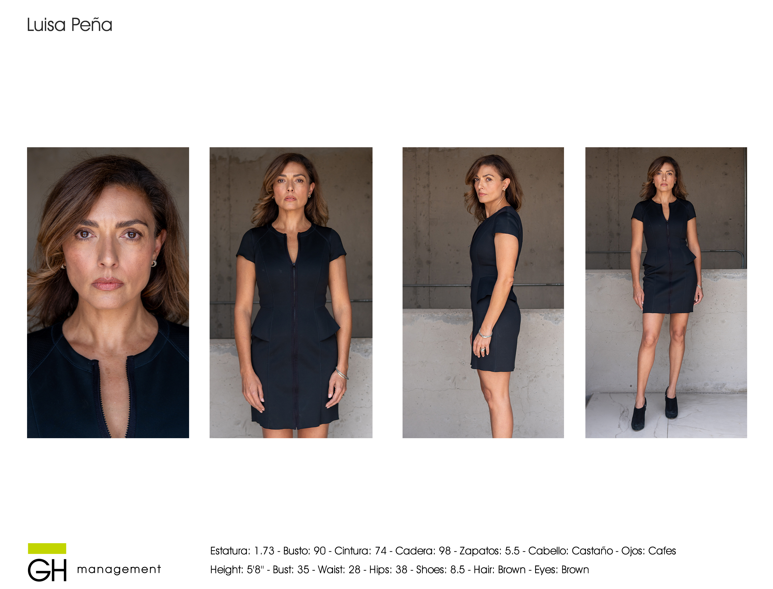 Estatura: 1.73 - Busto: 90 - Cintura: 74 - Cadera: 98 - Zapatos: 5.5 - Cabello: Castaño - Ojos: Cafes