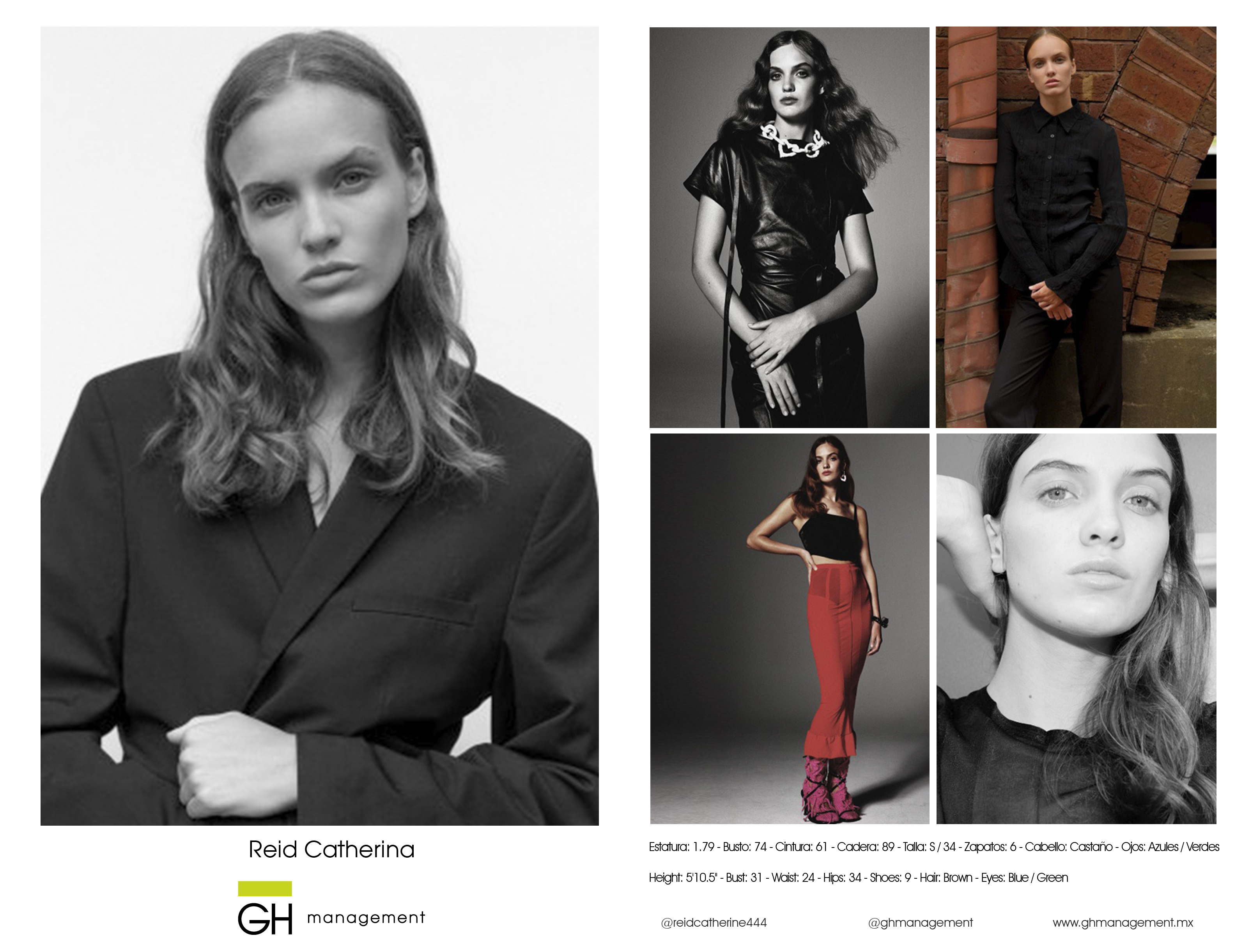 Height: 5'10.5'' - Bust: 31 - Waist: 24 - Hips: 34 - Shoes: 9 - Hair: Brown - Eyes: Blue / Green