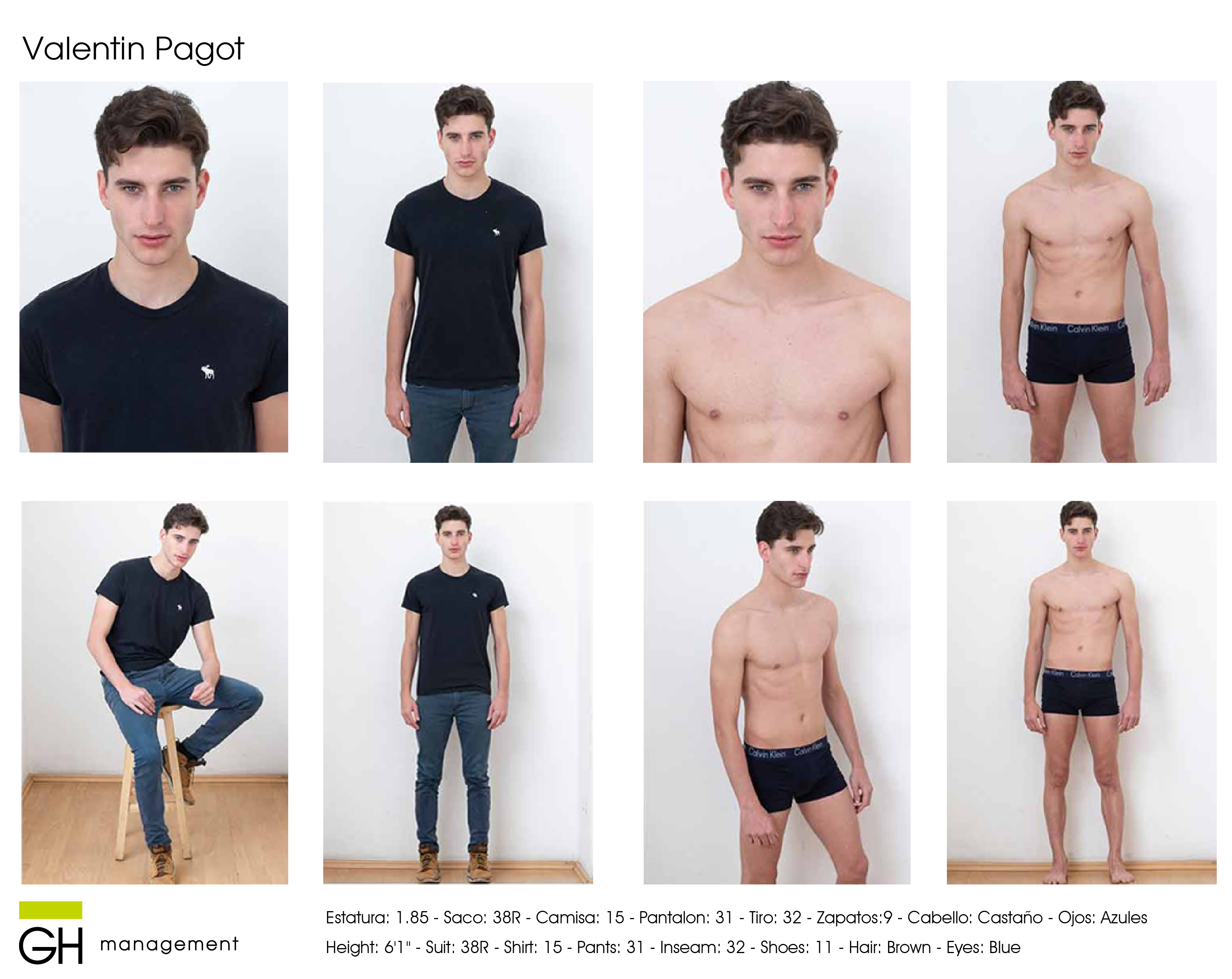 Estatura: 1.85 - Saco: 38R - Camisa: 15 - Pantalon: 31 - Tiro: 32 - Zapatos:9 - Cabello: CastaƱo - Ojos: Azules